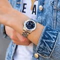 Женские швейцарские часы Jaguar Woman J892/3. Кварцевый швейцарский калибр Ronda 705. Сапфировое стеклоСапфировое стеклоПрочный и надёжный материал из кристалла сапфира синтетического происхождения, характеризующийся особой твёрдостью и устойчивостью к царапинам и повреждениям. устойчивое к мелким механическим повреждениям. Корпус и браслет часов изготовлены из нержавеющей стали, с безелем, инкрустированным цирконием. Стрелки с люминесцентным покрытиемЛюминесцентное покрытиеПозволяет считывать показания времени в темноте. Производители наносят на стрелки, часовые индексы, безель или поверхность циферблата светонакопительный состав, дающий холодное свечение.. Окошко даты находится в положении 3 часа. Класс водозащиты: 200 метров, позволит плавать, нырять и заниматься другими водными видами спорта. Стальной браслет на раскладной застёжкеРаскладная застёжкаТакой тип застёжки используется только на браслетах из металла. Она никогда не раскрывается полностью, происходит разделение на 2 и более частей. Раскладывающая застёжка снизит вероятность потери часов к минимуму.. Циферблат украшен кристаллами в роли часовых индексов.