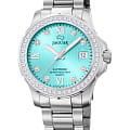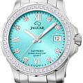 Jaguar J892/6 из коллекции Woman — элегантные женские часы, сочетающие швейцарское качество и изысканный дизайн. Корпус диаметром 34,5 мм выполнен из нержавеющей стали, что обеспечивает прочность и долговечность. Сапфировое стеклоСапфировое стеклоПрочный и надёжный материал из кристалла сапфира синтетического происхождения, характеризующийся особой твёрдостью и устойчивостью к царапинам и повреждениям. защищает циферблат от царапин. БезельБезельВнешний ободок, закрепляющий стекло. В спортивных часах так называется поворотное кольцо с делениями на циферблате, выполняет роль таймера – замеряет отрезки времени на шкале. Неподвижный безель – элемент декора. Однонаправленно вращающийся безель на дайверских часах позволяет фиксировать моменты погружения и выныривания на поверхность. украшен цирконами, что придаёт часам роскошный и элегантный вид. Синий циферблат с серебристыми стрелками и индексами, украшенными цирконами, подчёркивает изысканность дизайна. Часы оснащены функциями индикации дня недели и даты, что добавляет практичности. Браслет из нержавеющей стали обеспечивает комфортное ношение. Раскладная застёжкаРаскладная застёжкаТакой тип застёжки используется только на браслетах из металла. Она никогда не раскрывается полностью, происходит разделение на 2 и более частей. Раскладывающая застёжка снизит вероятность потери часов к минимуму. гарантирует надёжную фиксацию. Водозащита до 20 ATM (200 метров) делает часы подходящими для плавания и водных видов спорта. Jaguar J892/6 — это идеальный выбор для женщин, которые ценят элегантность, функциональность и швейцарское качество.