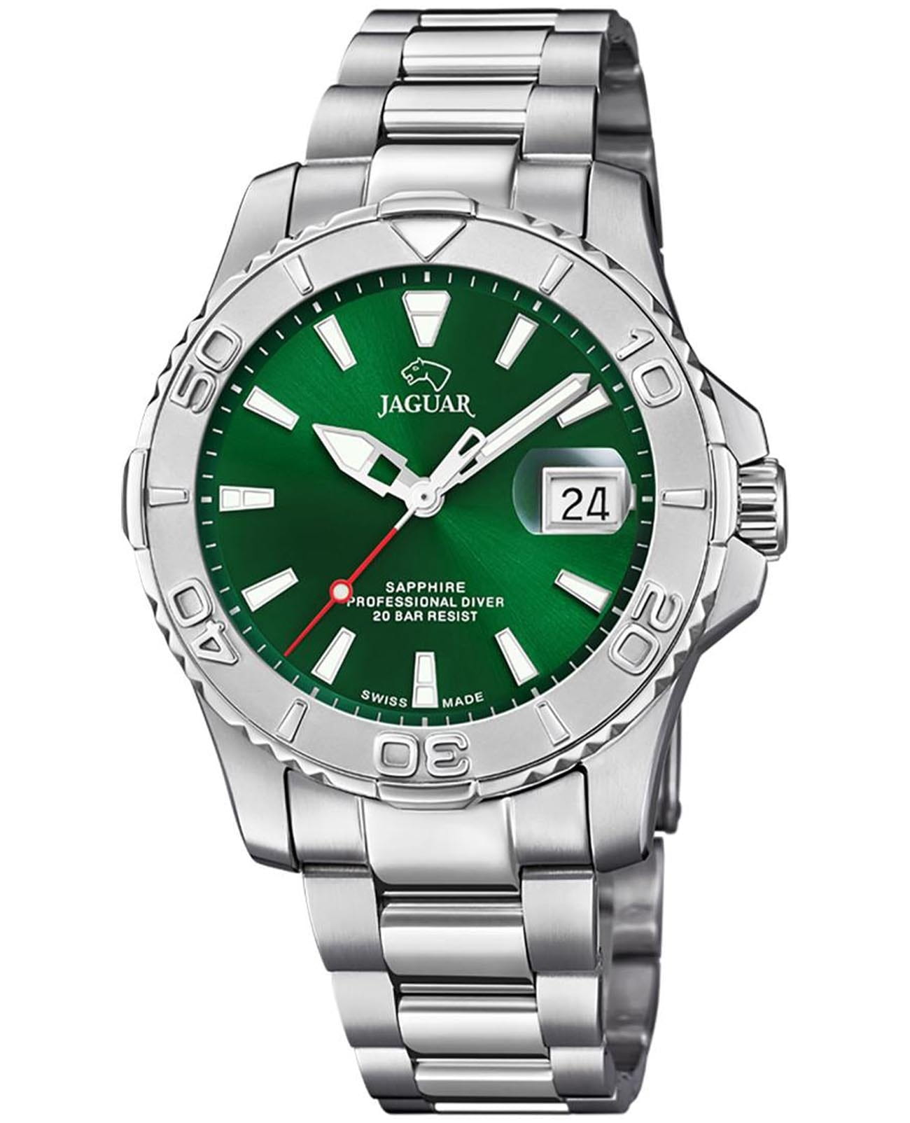 Унисекс швейцарские часы Jaguar Couple Diver J969/1. Кварцевый швейцарский калибр Ronda 6003.d. Сапфировое стеклоСапфировое стеклоПрочный и надёжный материал из кристалла сапфира синтетического происхождения, характеризующийся особой твёрдостью и устойчивостью к царапинам и повреждениям. устойчивое к мелким механическим повреждениям. Корпус и браслет часов изготовлены из нержавеющей стали. Стрелки и метки с люминесцентным покрытиемЛюминесцентное покрытиеПозволяет считывать показания времени в темноте. Производители наносят на стрелки, часовые индексы, безель или поверхность циферблата светонакопительный состав, дающий холодное свечение.. Окошко даты находится в положении 3 часа. Класс водозащиты: 200 метров, позволит плавать, нырять и заниматься другими водными видами спорта. Стальной браслет на раскладной застёжкеРаскладная застёжкаТакой тип застёжки используется только на браслетах из металла. Она никогда не раскрывается полностью, происходит разделение на 2 и более частей. Раскладывающая застёжка снизит вероятность потери часов к минимуму..