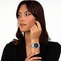 Женские элегантные часы Karl Lagerfeld Round Essentials R0553101511, кварцевый механизм с высокой точностью. Минеральное стеклоМинеральное стеклоМинеральное стекло представляет собой искусственно выращенный минерал кварца. Такое стекло отличается особой устойчивостью к повреждениям и царапинам. Уступает по некоторым качествам сапфировому стеклу. устойчивое к появлению царапин, обладающее высокой прозрачностью. Изысканный корпус изготовлен из нержавеющей стали. Лаконичные центральные часовая, минутная и секундная стрелки. Водонепроницаемость 5 АТМ позволяет использовать часы в повседневных условиях — при мытье рук или под лёгким дождём. Стальной браслет c раскладной застёжкойРаскладная застёжкаТакой тип застёжки используется только на браслетах из металла. Она никогда не раскрывается полностью, происходит разделение на 2 и более частей. Раскладывающая застёжка снизит вероятность потери часов к минимуму., обеспечивающей комфорт и уверенную фиксацию на запястье, а также добавляя завершающий штрих к этому стильному аксессуару. Стрелки оснащены люминесцентным покрытиемЛюминесцентное покрытиеПозволяет считывать показания времени в темноте. Производители наносят на стрелки, часовые индексы, безель или поверхность циферблата светонакопительный состав, дающий холодное свечение., обеспечивающим хорошую читаемость в темноте. Циферблат и безельБезельВнешний ободок, закрепляющий стекло. В спортивных часах так называется поворотное кольцо с делениями на циферблате, выполняет роль таймера – замеряет отрезки времени на шкале. Неподвижный безель – элемент декора. Однонаправленно вращающийся безель на дайверских часах позволяет фиксировать моменты погружения и выныривания на поверхность. с кристаллами подчёркивают изысканный характер часов, создавая универсальный образ, подходящий как для повседневных ситуаций, так и для особых случаев. Аккуратное окошко даты на отметке «3 часов».