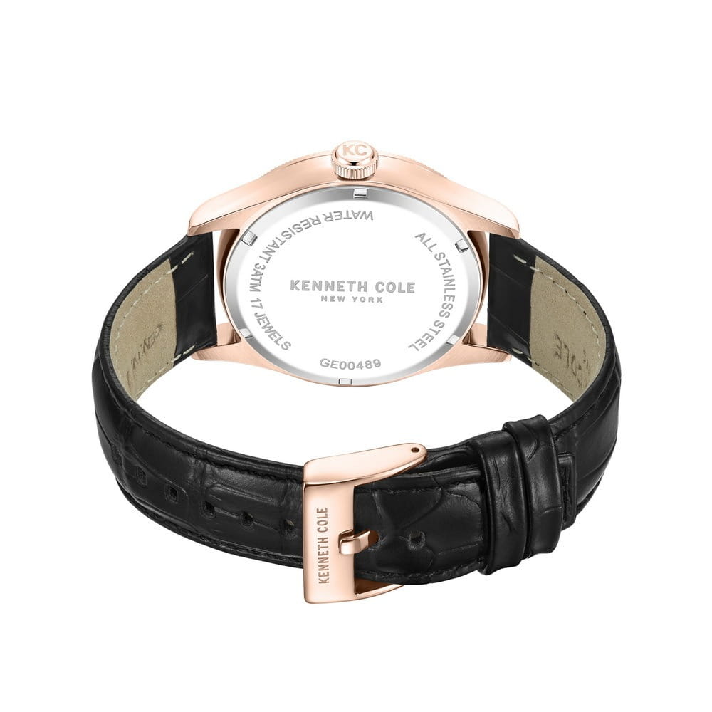 Мужские наручные часы Kenneth Cole MECHANICAL KCWGE0048904 — это воплощение мастерства и изысканности в мире аксессуаров. Эти часы оснащены механическим механизмом, который позволяет наслаждаться классическим подходом к измерению времени. Особенность модели — скелетон — открывает внутренние детали механизма через черный циферблат, создавая завораживающий вид. Корпус часов выполнен из прочной стали с IP-покрытиемIP-покрытиеМетод ионного напыления. Демонстрирует повышенную устойчивость к истиранию, окислению и химическим веществам. Под воздействием высокого давления и температуры около 1500°C молекулы металла надёжно соединяются с частицами корпуса часов. в цвете розового золота, что придает часам утонченность и изысканность. Минеральное стеклоМинеральное стеклоМинеральное стекло представляет собой искусственно выращенный минерал кварца. Такое стекло отличается особой устойчивостью к повреждениям и царапинам. Уступает по некоторым качествам сапфировому стеклу. защищает циферблат, обеспечивая долговечность и стойкость к повреждениям. Кожаный ремешок черного цвета с классической пряжкой подчеркивает элегантность и комфорт при ношении. Люминесцентное покрытиеЛюминесцентное покрытиеПозволяет считывать показания времени в темноте. Производители наносят на стрелки, часовые индексы, безель или поверхность циферблата светонакопительный состав, дающий холодное свечение. на стрелках и метках обеспечивает отличную видимость в темноте. Водозащита на уровне 30 метров (3 АТМ) обеспечивает базовую защиту от влаги, что делает эти часы практичным выбором для повседневного использования.