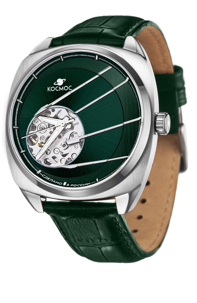 Мужские наручные часы Космос Спутник K 115.17.37 — это уникальная лимитированная серия, созданная в честь исторического запуска первого искусственного спутника Земли. В корпусе необычной круглой формы, выполненном из гипоаллергенной нержавеющей стали, работает надежный механический механизм с автоподзаводом от японской компании Seiko. Прозрачная задняя крышка, закрепленная на четырех винтах, открывает вид на сложный механизм, а на самой крышке указан индивидуальный номер модели в формате хх/50. Скелетонизированный зеленый циферблат защищен сапфировым стекломСапфировое стеклоПрочный и надёжный материал из кристалла сапфира синтетического происхождения, характеризующийся особой твёрдостью и устойчивостью к царапинам и повреждениям. с антибликовым покрытиемАнтибликовое покрытиеСлой оксида металла в 0,13-0,3 микрон, благодаря которому стекло часов не бликует и не отражает свет. Антибликовое покрытие уменьшает отражение света в 10 раз, обеспечивая отличную читаемость показателей циферблата., которое обеспечивает максимальную устойчивость к царапинам и идеальную видимость в любых условиях. Украшением циферблата служат крупные стрелки с люминесцентным покрытиемЛюминесцентное покрытиеПозволяет считывать показания времени в темноте. Производители наносят на стрелки, часовые индексы, безель или поверхность циферблата светонакопительный состав, дающий холодное свечение., а также специальная апертура, окаймленная элементами, напоминающими антенны Спутника. Часовая и минутная стрелки отлично читаются благодаря своему размеру и светящемуся покрытию. Браслет из натуральной кожи зеленого цвета дополнен удобной застежкой-бабочкой с двумя боковыми кнопкамиЗастёжка "бабочка"Такой вид застёжки дополняется предохранителями, помогающими избежать случайного раскрытия браслета. Обладают изящным исполнением. , что гарантирует надежную фиксацию на руке. Водозащита до 10 атм (WR100) позволяет использовать часы при плавании и других водных видах спорта без акваланга. Коллекция Спутник — это выбор для ценителей истории космических достижений и современных технологий.