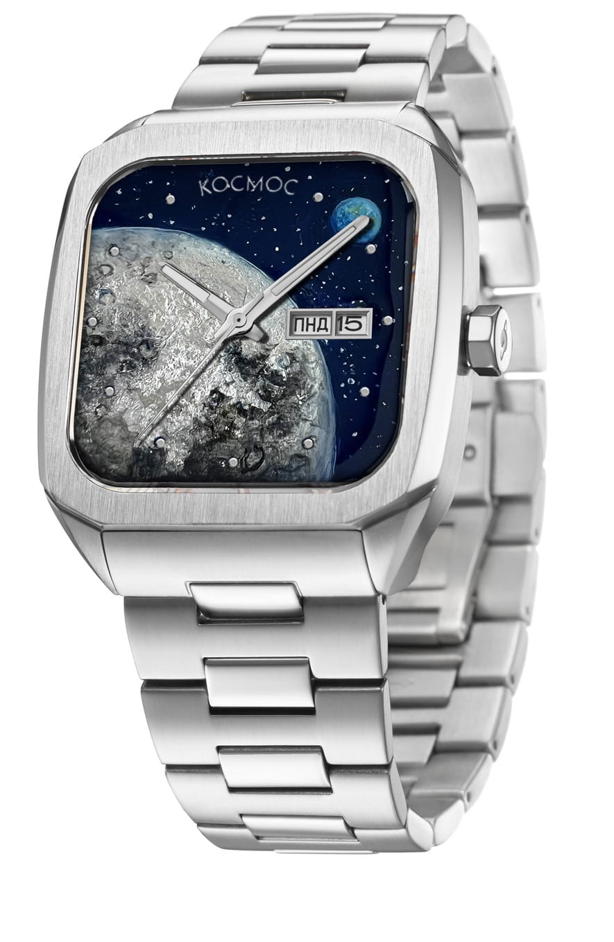 Мужские наручные часы Космос К 213.10 - Восход на Луне — это уникальная модель. Вы когда-нибудь задумывались, как выглядит восход Земли с точки зрения находящегося на Луне? Современные космические аппараты позволяют каждому увидеть это явление в записи, а мастера бренда Космос воссоздали восход на Луне, используя технику лаковой миниатюры. На основу было нанесено несколько слоев лака и краски - их чередование создает эффект объема и ощущение динамики. Для передачи неоднородности лунного грунта использовали тончайший лист серебряной фольги. Насыщенно-синий цвет фона передает бескрайность космического пространства и служит фоном россыпи ярких звезд. Для создания этой уникальной модели часов мастера бренда выбрали технику лаковой миниатюры. На основу наносится несколько слоев лака и краски, их чередование создает объемный эффект и ощущение движения. Процесс постепенной прорисовки деталей довольно длительный: художнику требуется до 50 часов для завершения одного сюжета. Затем миниатюра запекается в специальной печи, что придаёт рисунку необходимую яркость и завершенность. Эти часы созданы в единственном экземпляре. В часах установлен механизм TMI с функцией автоподзавода. Они показывают часы, минуты и секунды, а также дату и день недели, индикатор которых с накладной рамкой расположен в положении «3 часа». За движением деталей механизма можно наблюдать, стоит только перевернуть часы: задняя крышка прозрачная, закреплена на 4-х винтах. Часовая и минутная стрелки c люминесцентным покрытиемЛюминесцентное покрытиеПозволяет считывать показания времени в темноте. Производители наносят на стрелки, часовые индексы, безель или поверхность циферблата светонакопительный состав, дающий холодное свечение., которое светится в темноте. В модели установлено сапфировое стеклоСапфировое стеклоПрочный и надёжный материал из кристалла сапфира синтетического происхождения, характеризующийся особой твёрдостью и устойчивостью к царапинам и повреждениям. с антибликовым покрытиемАнтибликовое покрытиеСлой оксида металла в 0,13-0,3 микрон, благодаря которому стекло часов не бликует и не отражает свет. Антибликовое покрытие уменьшает отражение света в 10 раз, обеспечивая отличную читаемость показателей циферблата.. Браслет собран из стальных звеньев с полировкой, удобная и надежная застежка-клипса украшена логотипом бренда Космос.