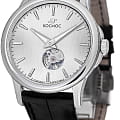Мужские наручные часы Космос Телескоп K 304.11.33 —  это уникальная лимитированная серия под названием Телескоп, посвящена аппарату приоткрывающего взгляду бескрайние дали космического пространства. Апертура открытого баланса модели по форме напоминает круглую линзу телескопа. Сквозь это окошко, расположенное на черном циферблате, также можно увидеть много интересного: ту самую систему «баланс-спираль» автоматического механизма, которая отвечает за точность хода. Корпус часов выполнен из нержавеющей стали, классической круглой формы и достаточно тонкий для механических моделей. Это стало возможным благодаря использованию механизма Miyota, калибр 9029, с высотой всего 3.9 мм. Циферблат декорирован вертикальной текстурой в ретро-стиле, по которой движутся крупные часовая и минутная стрелки, имеющие люминесцентное покрытиеЛюминесцентное покрытиеПозволяет считывать показания времени в темноте. Производители наносят на стрелки, часовые индексы, безель или поверхность циферблата светонакопительный состав, дающий холодное свечение., позволяющее определять время даже в темноте. Циферблат защищен прочным сапфировым стеклом с антибликовым покрытиемСапфировое стеклоПрочный и надёжный материал из кристалла сапфира синтетического происхождения, характеризующийся особой твёрдостью и устойчивостью к царапинам и повреждениям., обеспечивающим отличную читаемость показаний в любых условиях. Прозрачная задняя крышка, закрепленная на четырех винтах, демонстрирует механизм и содержит выгравированный индивидуальный номер экземпляра  хх/50, отражающий лимитированный тираж всего в 50 штук. Ремешок часов сделан из натуральной кожи черного цвета и оснащен удобной застёжкой «бабочка» с кнопкамиЗастёжка "бабочка"Такой вид застёжки дополняется предохранителями, помогающими избежать случайного раскрытия браслета. Обладают изящным исполнением. , которая сводит к минимуму вероятность потери. Модель Телескоп сочетает классический дизайн и универсальность, прекрасно подходя как к деловому костюму, так и к более повседневным образам.