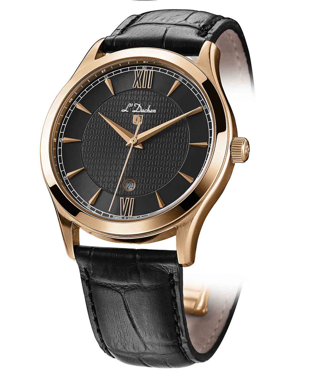 Мужские швейцарские часы L'Duchen Carcassonne D 761.41.11, кварцевый механизм с высокой точностью. Сапфировое стеклоСапфировое стеклоПрочный и надёжный материал из кристалла сапфира синтетического происхождения, характеризующийся особой твёрдостью и устойчивостью к царапинам и повреждениям. устойчивое к появлению царапин, обладающее высокой прозрачностью. Корпус часов выполнен из нержавеющей стали с PVD-покрытиемPVDУльтратонкое покрытие наносится в технике вакуумного напыления, сочетает в себе нитрид титана особой прочности со слоем золота или оксида хрома. Несёт в себе декоративную или защитную функцию.. Класс водозащиты: 50 метров, позволит защитить корпус от случайных брызг или капель дождя. Кожаный ремешок на застёжке «бабочка» с кнопкамиЗастёжка "бабочка"Такой вид застёжки дополняется предохранителями, помогающими избежать случайного раскрытия браслета. Обладают изящным исполнением. .