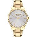 Женские часы Lee Cooper LC07543.130 — это стильное сочетание элегантности и современного дизайна. Круглый корпус диаметром 34 мм выполнен из суперметалла с IP-покрытиемIP-покрытиеМетод ионного напыления. Демонстрирует повышенную устойчивость к истиранию, окислению и химическим веществам. Под воздействием высокого давления и температуры около 1500°C молекулы металла надёжно соединяются с частицами корпуса часов. золотого цвета, что придает модели особый блеск. Серебристый циферблат защищен минеральным стекломМинеральное стеклоМинеральное стекло представляет собой искусственно выращенный минерал кварца. Такое стекло отличается особой устойчивостью к повреждениям и царапинам. Уступает по некоторым качествам сапфировому стеклу., обеспечивающим устойчивость к царапинам. Неподвижный рифленый безельБезельВнешний ободок, закрепляющий стекло. В спортивных часах так называется поворотное кольцо с делениями на циферблате, выполняет роль таймера – замеряет отрезки времени на шкале. Неподвижный безель – элемент декора. Однонаправленно вращающийся безель на дайверских часах позволяет фиксировать моменты погружения и выныривания на поверхность.. Метки в виде штрихов. Часы оснащены надежным кварцевым механизмом, а металлический браслет с IP-покрытиемIP-покрытиеМетод ионного напыления. Демонстрирует повышенную устойчивость к истиранию, окислению и химическим веществам. Под воздействием высокого давления и температуры около 1500°C молекулы металла надёжно соединяются с частицами корпуса часов. на раскладной застёжкеРаскладная застёжкаТакой тип застёжки используется только на браслетах из металла. Она никогда не раскрывается полностью, происходит разделение на 2 и более частей. Раскладывающая застёжка снизит вероятность потери часов к минимуму. гарантирует комфортную посадку на запястье. Водозащита 30 метров защищает модель от случайных брызг и дождя. Lee Cooper — отличный выбор для тех, кто ценит утонченность и качество.