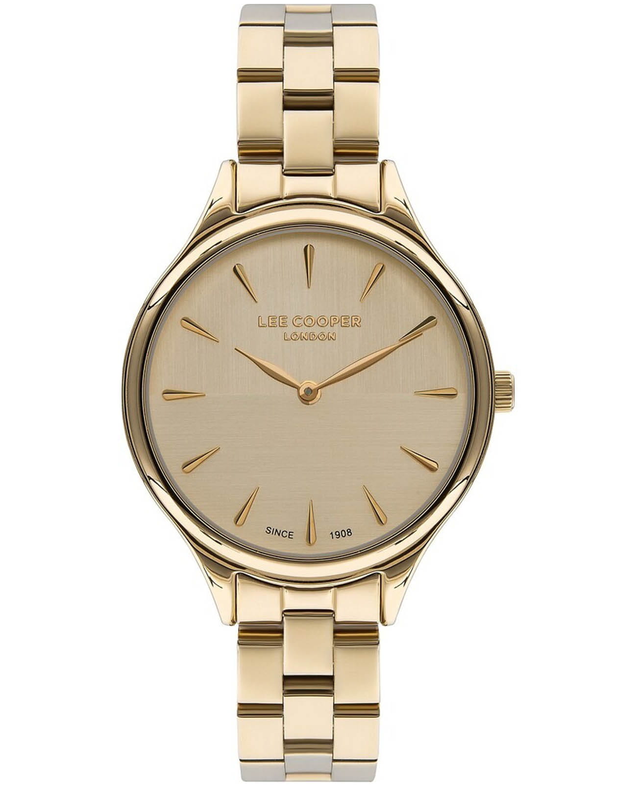Женские наручные часы Lee Cooper LC07568.110 — это изысканная модель, сочетающая элегантный дизайн и практичность. Корпус диаметром 36 мм выполнен из суперметалла, и золотистый безельБезельВнешний ободок, закрепляющий стекло. В спортивных часах так называется поворотное кольцо с делениями на циферблате, выполняет роль таймера – замеряет отрезки времени на шкале. Неподвижный безель – элемент декора. Однонаправленно вращающийся безель на дайверских часах позволяет фиксировать моменты погружения и выныривания на поверхность. из нержавеющей стали с IP-покрытиемIP-покрытиеМетод ионного напыления. Демонстрирует повышенную устойчивость к истиранию, окислению и химическим веществам. Под воздействием высокого давления и температуры около 1500°C молекулы металла надёжно соединяются с частицами корпуса часов. обеспечивает долговечность и надежность. Модель оснащена надёжным кварцевым механизмом, обеспечивающим точность и долговечность. Минеральное стеклоМинеральное стеклоМинеральное стекло представляет собой искусственно выращенный минерал кварца. Такое стекло отличается особой устойчивостью к повреждениям и царапинам. Уступает по некоторым качествам сапфировому стеклу. защищает циферблат от повреждений и царапин, сохраняя его презентабельный вид. Водонепроницаемость 30 метров защищает часы от случайных брызг, что делает их подходящими для повседневных ситуаций, таких как мытьё рук или прогулки под лёгким дождём. Раскладная застёжкаРаскладная застёжкаТакой тип застёжки используется только на браслетах из металла. Она никогда не раскрывается полностью, происходит разделение на 2 и более частей. Раскладывающая застёжка снизит вероятность потери часов к минимуму. обеспечивает удобную посадку и надёжность при ношении. В целом, эти часы являются отличным выбором для тех, кто ищет аксессуар, объединяющий классический стиль, уникальное цветовое решение и функциональность. Их гармоничное сочетание серебристых и золотистых оттенков с элегантным зелёным циферблатом и качественным механизмом делает их идеальным дополнением к любому гардеробу — от официального до повседневного.