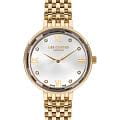 Женские кварцевые часы Lee Cooper LC07610.130 — это классический аксессуар с элегантным декором. Корпус диаметром 34 мм выполнен из суперметалла с IP-покрытиемIP-покрытиеМетод ионного напыления. Демонстрирует повышенную устойчивость к истиранию, окислению и химическим веществам. Под воздействием высокого давления и температуры около 1500°C молекулы металла надёжно соединяются с частицами корпуса часов. жёлтого золота. Циферблат серебристого цвета украшен индексами, римскими цифрами и вставками из камней, придающими сияние и изысканность. Циферблат защищён минеральным стекломМинеральное стеклоМинеральное стекло представляет собой искусственно выращенный минерал кварца. Такое стекло отличается особой устойчивостью к повреждениям и царапинам. Уступает по некоторым качествам сапфировому стеклу.. Часы оснащены стальным браслетом с IP-покрытиемIP-покрытиеМетод ионного напыления. Демонстрирует повышенную устойчивость к истиранию, окислению и химическим веществам. Под воздействием высокого давления и температуры около 1500°C молекулы металла надёжно соединяются с частицами корпуса часов. жёлтого золота на раскладной застёжкеРаскладная застёжкаТакой тип застёжки используется только на браслетах из металла. Она никогда не раскрывается полностью, происходит разделение на 2 и более частей. Раскладывающая застёжка снизит вероятность потери часов к минимуму.. Водонепроницаемость 30 м позволяет использовать часы в повседневных условиях, защищая от случайных брызг и капель дождя. Сочетание классического стиля и детального исполнения делает эти часы универсальным выбором на каждый день.
