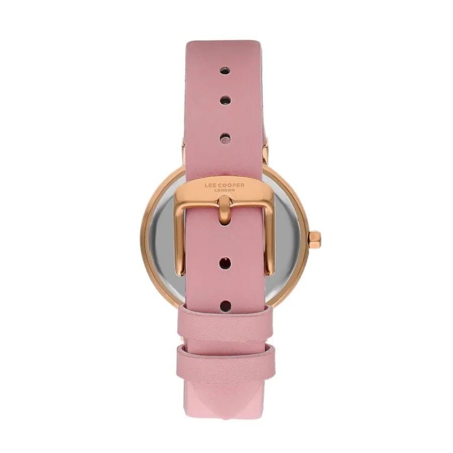 Женские кварцевые часы Lee Cooper LC07624.438 — это элегантный аксессуар с классическим дизайном. Корпус диаметром 34 мм выполнен из суперметалла с IP-покрытиемIP-покрытиеМетод ионного напыления. Демонстрирует повышенную устойчивость к истиранию, окислению и химическим веществам. Под воздействием высокого давления и температуры около 1500°C молекулы металла надёжно соединяются с частицами корпуса часов. жёлтого золота. Циферблат серебристого цвета оформлен индексами и арабскими цифрами. Циферблат защищён минеральным стекломМинеральное стеклоМинеральное стекло представляет собой искусственно выращенный минерал кварца. Такое стекло отличается особой устойчивостью к повреждениям и царапинам. Уступает по некоторым качествам сапфировому стеклу.. Часы оснащены кожаным ремешком розового цвета с классической пряжкой. Водонепроницаемость 30 м позволяет использовать часы в повседневных условиях, защищая от случайных брызг и капель дождя. Сочетание лаконичного стиля и качественного исполнения делает эти часы универсальным выбором на каждый день.