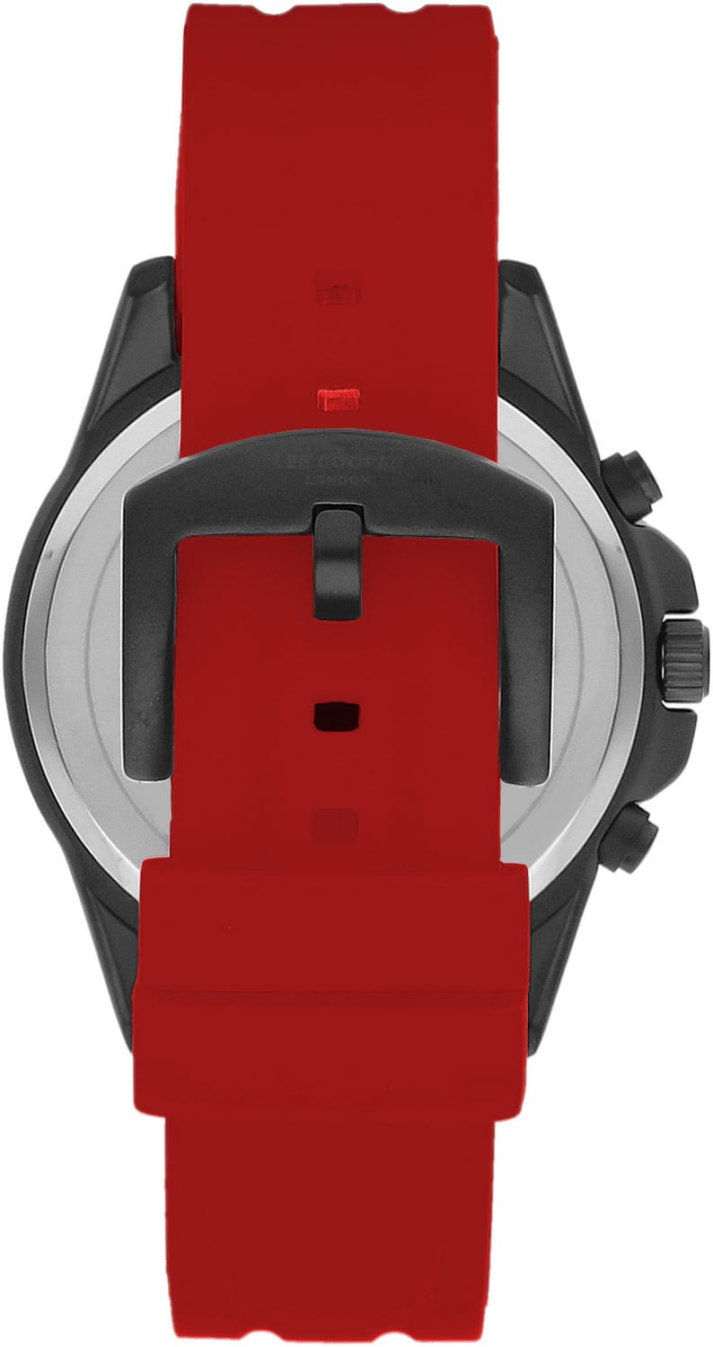 Lee Cooper LC07635.658  — элегантная модель с функциональными возможностями для повседневного использования. Корпус из суперметалла  с IP-покрытиемIP-покрытиеМетод ионного напыления. Демонстрирует повышенную устойчивость к истиранию, окислению и химическим веществам. Под воздействием высокого давления и температуры около 1500°C молекулы металла надёжно соединяются с частицами корпуса часов. и диаметром 46 мм придаёт часам классический и современный вид. Циферблат защищён минеральным стекломМинеральное стеклоМинеральное стекло представляет собой искусственно выращенный минерал кварца. Такое стекло отличается особой устойчивостью к повреждениям и царапинам. Уступает по некоторым качествам сапфировому стеклу., устойчивым к царапинам, хорошо может выдержать небольшие удары и падения. Стильный циферблат оформлен изысканными индексами и дополнен окошками даты, дня недели и 24-часового индикатора, а также аккуратными метками и стрелками с люминесцентным покрытиемЛюминесцентное покрытиеПозволяет считывать показания времени в темноте. Производители наносят на стрелки, часовые индексы, безель или поверхность циферблата светонакопительный состав, дающий холодное свечение., что гарантирует читаемость даже в условиях недостаточного освещения. Функция второго часового поясаВторой часовой поясФункция, позволяющая отображать время двух часовых поясов одновременно. делает часы удобными для путешественников. Часы работают на кварцевом механизме, обеспечивающем точность хода. Каучуковый ремешок на стандартной застёжке гарантирует удобную посадку и надёжную фиксацию на запястье. Водозащита 50 метров защищает часы от брызг и дождя, делая их подходящими для повседневного использования.