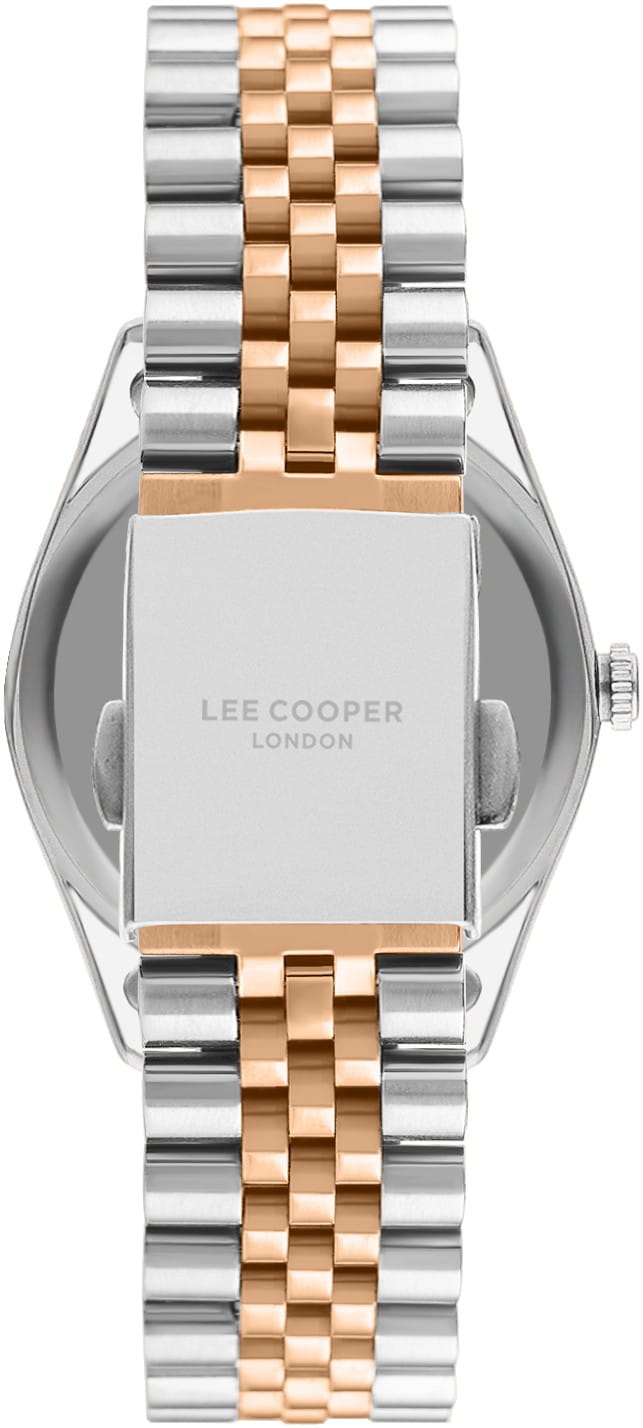 Женские наручные часы Lee Cooper LC07681.530 — это элегантная модель с утончённым дизайном. Корпус диаметром 32 мм выполнен из суперметалла с безелемБезельВнешний ободок, закрепляющий стекло. В спортивных часах так называется поворотное кольцо с делениями на циферблате, выполняет роль таймера – замеряет отрезки времени на шкале. Неподвижный безель – элемент декора. Однонаправленно вращающийся безель на дайверских часах позволяет фиксировать моменты погружения и выныривания на поверхность. с IP-покрытиемIP-покрытиеМетод ионного напыления. Демонстрирует повышенную устойчивость к истиранию, окислению и химическим веществам. Под воздействием высокого давления и температуры около 1500°C молекулы металла надёжно соединяются с частицами корпуса часов., что придаёт часам изысканный вид. Серебристый циферблат украшен изящными вставками из циркония в виде меток времени и стрелками, обеспечивая удобное считывание времени. Циферблат защищён минеральным стекломМинеральное стеклоМинеральное стекло представляет собой искусственно выращенный минерал кварца. Такое стекло отличается особой устойчивостью к повреждениям и царапинам. Уступает по некоторым качествам сапфировому стеклу., устойчивым к царапинам. Часы работают на кварцевом механизме, обеспечивая точность хода. Браслет из нержавеющей стали с частичным IP-покрытиемIP-покрытиеМетод ионного напыления. Демонстрирует повышенную устойчивость к истиранию, окислению и химическим веществам. Под воздействием высокого давления и температуры около 1500°C молекулы металла надёжно соединяются с частицами корпуса часов. с раскладной застёжкойРаскладная застёжкаТакой тип застёжки используется только на браслетах из металла. Она никогда не раскрывается полностью, происходит разделение на 2 и более частей. Раскладывающая застёжка снизит вероятность потери часов к минимуму. гарантирует комфортное ношение и надёжную фиксацию на запястье. Стрелки с люминесцентным покрытиемЛюминесцентное покрытиеПозволяет считывать показания времени в темноте. Производители наносят на стрелки, часовые индексы, безель или поверхность циферблата светонакопительный состав, дающий холодное свечение., обеспечивающим хорошую читаемость в темноте. Водозащита 30 метров защищает часы от случайных брызг и дождя, делая их подходящими для повседневного использования.