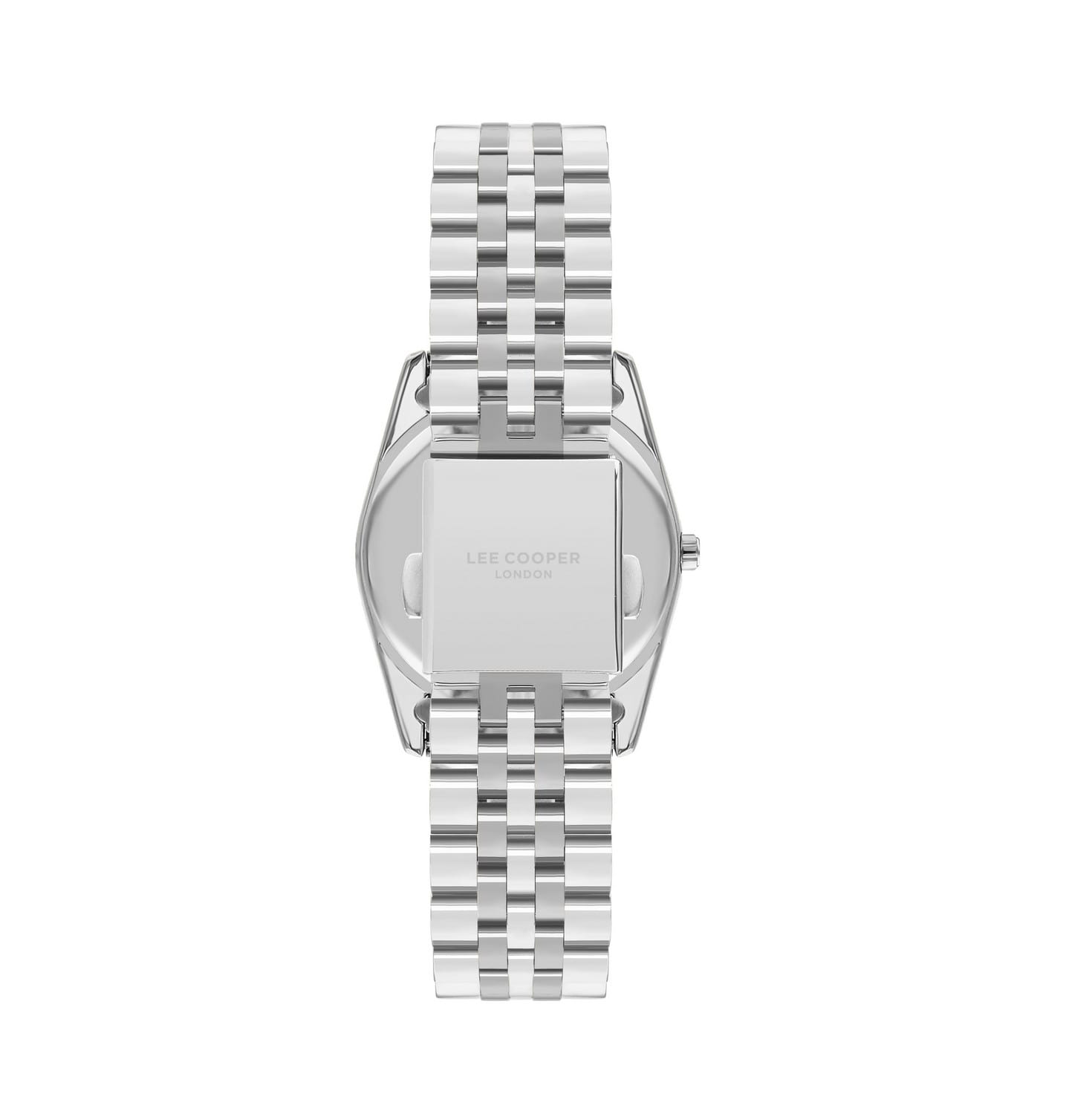 Женские часы Lee Cooper LC07811.390 — это стильное сочетание элегантности и современного дизайна. Изысканный корпус диаметром 37 мм выполнен из суперметалла серебристого цвета, придающий модели особый блеск. Циферблат красного цвета защищен минеральным стекломМинеральное стеклоМинеральное стекло представляет собой искусственно выращенный минерал кварца. Такое стекло отличается особой устойчивостью к повреждениям и царапинам. Уступает по некоторым качествам сапфировому стеклу., обеспечивающим устойчивость к царапинам. Метки в виде римских цифр. Вынесенный циферблат с 24-х часовым указателем времени, индикацией даты и дня недели. Часы оснащены надежным кварцевым механизмом, а серебристый стальной браслет на раскладной застёжкеРаскладная застёжкаТакой тип застёжки используется только на браслетах из металла. Она никогда не раскрывается полностью, происходит разделение на 2 и более частей. Раскладывающая застёжка снизит вероятность потери часов к минимуму. гарантирует комфортную посадку на запястье. Водозащита 50 метров защищает модель от случайных брызг и дождя. Lee Cooper  — отличный выбор для тех, кто ценит утонченность и качество.
