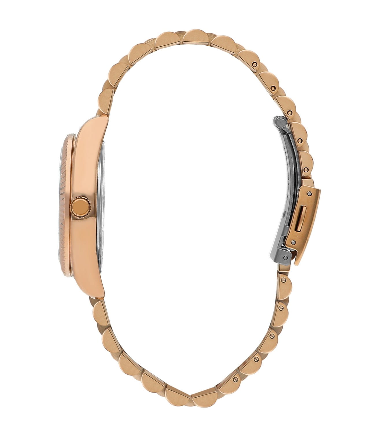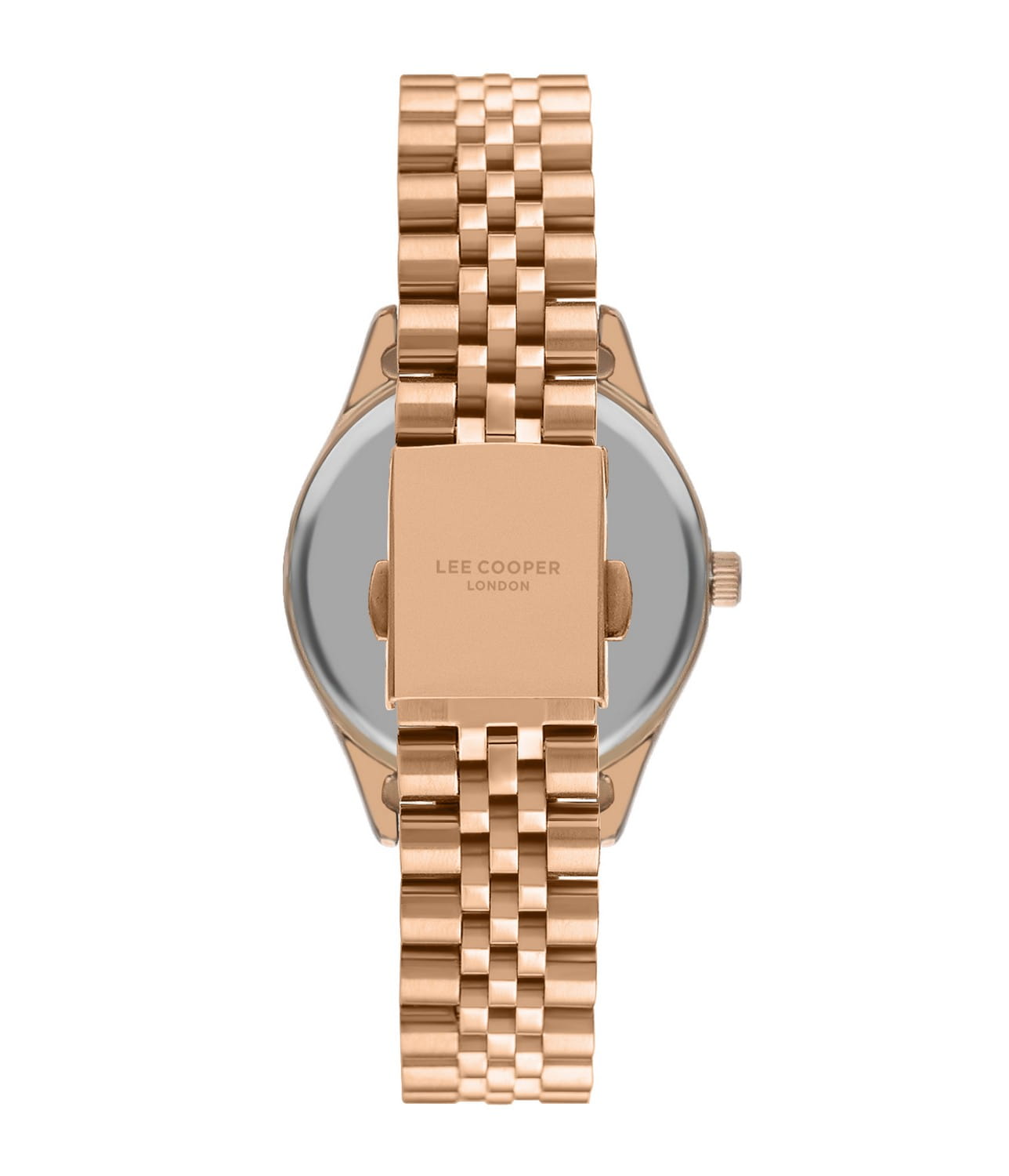 Женские часы Lee Cooper LC07824.420 выполнены в классическом стиле и сочетают строгий дизайн с надёжным механизмом. Модель оснащена кварцевым механизмом, обеспечивающим точность хода и минимальное обслуживание. Изящный корпус имеет размер 36 мм, изготовлен из суперметалла с IP-покрытиемIP-покрытиеМетод ионного напыления. Демонстрирует повышенную устойчивость к истиранию, окислению и химическим веществам. Под воздействием высокого давления и температуры около 1500°C молекулы металла надёжно соединяются с частицами корпуса часов., гарантирует комфорт при ношении. Перламутровый циферблат дополнен штрихами и римскими цифрами для чёткого отсчёта времени. Защиту циферблата обеспечивает минеральное стеклоМинеральное стеклоМинеральное стекло представляет собой искусственно выращенный минерал кварца. Такое стекло отличается особой устойчивостью к повреждениям и царапинам. Уступает по некоторым качествам сапфировому стеклу., устойчивое к мелким механическим повреждениям. Стальной браслет с IP-покрытиемIP-покрытиеМетод ионного напыления. Демонстрирует повышенную устойчивость к истиранию, окислению и химическим веществам. Под воздействием высокого давления и температуры около 1500°C молекулы металла надёжно соединяются с частицами корпуса часов. на раскладной застёжкеРаскладная застёжкаТакой тип застёжки используется только на браслетах из металла. Она никогда не раскрывается полностью, происходит разделение на 2 и более частей. Раскладывающая застёжка снизит вероятность потери часов к минимуму. гарантирует удобную посадку и надёжную фиксацию на запястье. Стрелки и метки с люминесцентным покрытиемЛюминесцентное покрытиеПозволяет считывать показания времени в темноте. Производители наносят на стрелки, часовые индексы, безель или поверхность циферблата светонакопительный состав, дающий холодное свечение., обеспечивающим хорошую читаемость в темноте.Водозащита 30WR позволяет использовать часы в повседневных условиях без риска повреждения от случайных брызг воды. Это сочетание классического дизайна, прочности материалов и качества исполнения для уверенных в себе женщин.