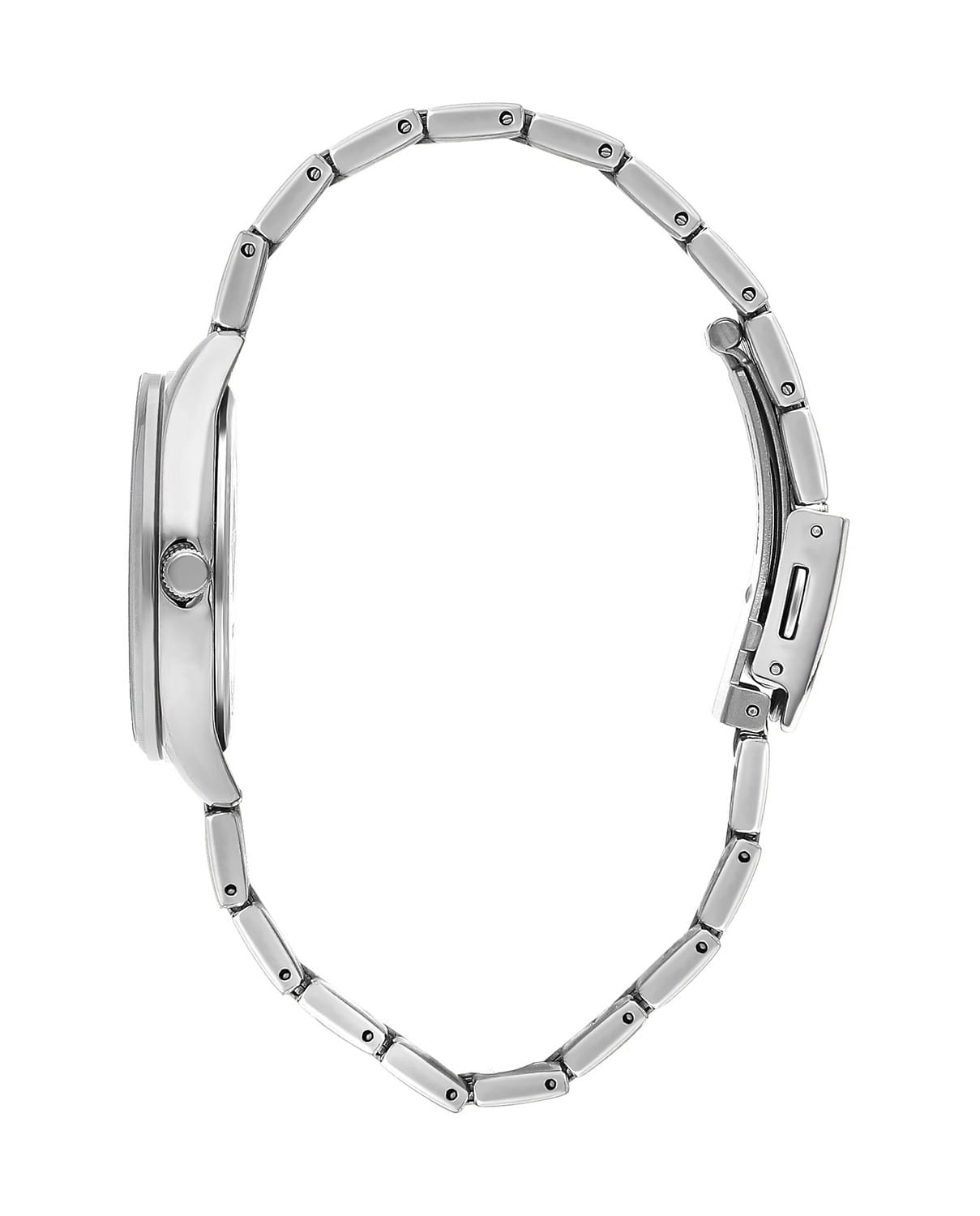 Женские часы Lee Cooper LC07832.390 выполнены в классическом стиле и сочетают строгий дизайн с надёжным механизмом. Модель оснащена кварцевым механизмом, обеспечивающим точность хода и минимальное обслуживание. Корпус круглой формы имеет размер 34 мм, изготовлен из суперметалла, гарантирует комфорт при ношении. Циферблат дополнен изящными вставками из циркона для чёткого отсчёта времени. Защиту циферблата обеспечивает минеральное стеклоМинеральное стеклоМинеральное стекло представляет собой искусственно выращенный минерал кварца. Такое стекло отличается особой устойчивостью к повреждениям и царапинам. Уступает по некоторым качествам сапфировому стеклу., устойчивое к мелким механическим повреждениям. Стрелки с люминесцентным покрытиемЛюминесцентное покрытиеПозволяет считывать показания времени в темноте. Производители наносят на стрелки, часовые индексы, безель или поверхность циферблата светонакопительный состав, дающий холодное свечение.. Стальной браслет на раскладной застёжкеРаскладная застёжкаТакой тип застёжки используется только на браслетах из металла. Она никогда не раскрывается полностью, происходит разделение на 2 и более частей. Раскладывающая застёжка снизит вероятность потери часов к минимуму. гарантирует удобную посадку и надёжную фиксацию на запястье. Водозащита 30WR позволяет использовать часы в повседневных условиях без риска повреждения от случайных брызг воды. Это сочетание классического дизайна, прочности материалов и качества исполнения для уверенных в себе женщин.