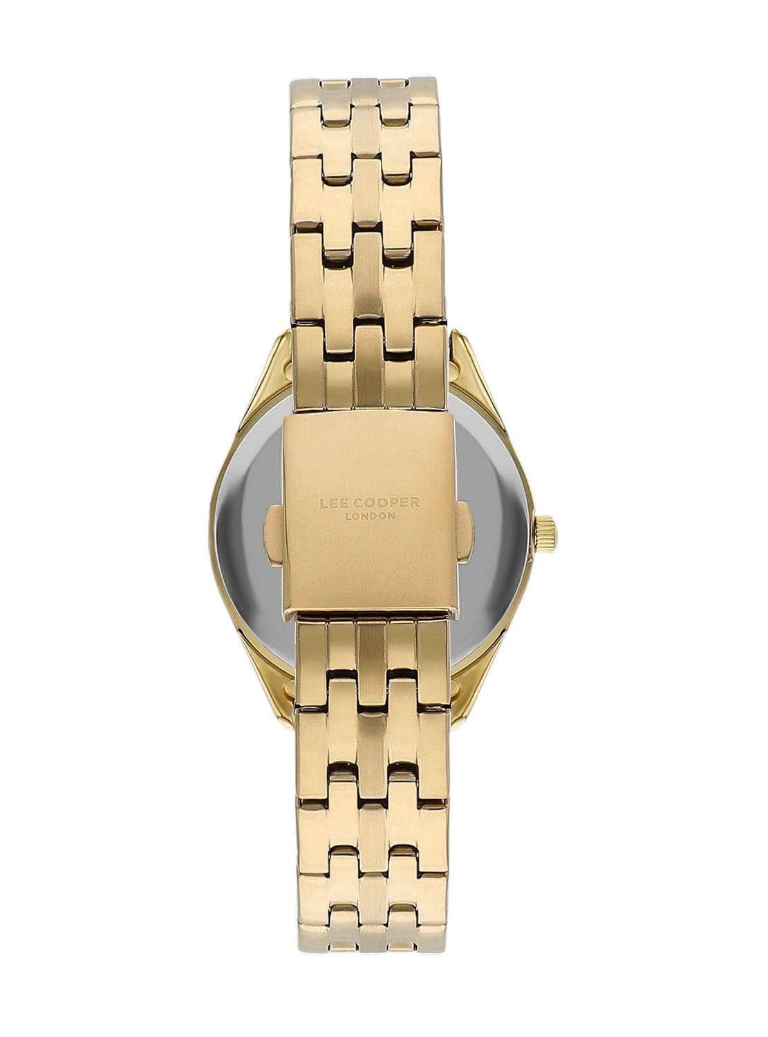 Женские часы Lee Cooper LC07833.130 — это стильное сочетание элегантности и современного дизайна. Изысканный круглый корпус диаметром 34 мм выполнен из суперметалла с IP-покрытиемIP-покрытиеМетод ионного напыления. Демонстрирует повышенную устойчивость к истиранию, окислению и химическим веществам. Под воздействием высокого давления и температуры около 1500°C молекулы металла надёжно соединяются с частицами корпуса часов. золотого цвета, что придает модели особый блеск. Серебристый циферблат защищен минеральным стекломМинеральное стеклоМинеральное стекло представляет собой искусственно выращенный минерал кварца. Такое стекло отличается особой устойчивостью к повреждениям и царапинам. Уступает по некоторым качествам сапфировому стеклу., обеспечивающим устойчивость к царапинам. Метки в виде лаконичных штрихов. Часы оснащены надежным кварцевым механизмом, а изящный стальной браслет с IP-покрытиемIP-покрытиеМетод ионного напыления. Демонстрирует повышенную устойчивость к истиранию, окислению и химическим веществам. Под воздействием высокого давления и температуры около 1500°C молекулы металла надёжно соединяются с частицами корпуса часов. на раскладной застёжкеРаскладная застёжкаТакой тип застёжки используется только на браслетах из металла. Она никогда не раскрывается полностью, происходит разделение на 2 и более частей. Раскладывающая застёжка снизит вероятность потери часов к минимуму. гарантирует комфортную посадку на запястье. Водозащита 30 метров защищает модель от случайных брызг и дождя. Lee Cooper — отличный выбор для тех, кто ценит утонченность и качество.