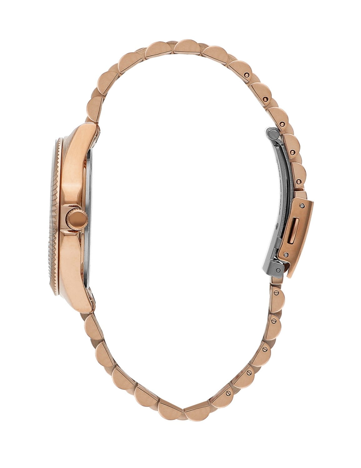 Женские часы Lee Cooper LC07837.430 — это стильное сочетание элегантности и современного дизайна. Корпус диаметром 36 мм выполнен из суперметалла с IP-покрытиемIP-покрытиеМетод ионного напыления. Демонстрирует повышенную устойчивость к истиранию, окислению и химическим веществам. Под воздействием высокого давления и температуры около 1500°C молекулы металла надёжно соединяются с частицами корпуса часов. золотого цвета, придающий модели особый блеск. Изысканный циферблат защищен минеральным стекломМинеральное стеклоМинеральное стекло представляет собой искусственно выращенный минерал кварца. Такое стекло отличается особой устойчивостью к повреждениям и царапинам. Уступает по некоторым качествам сапфировому стеклу., обеспечивающим устойчивость к царапинам. Метки в виде штрихов. Вынесенный циферблат с 24-х часовым указателем времени, индикацией даты и дня недели. Стрелки и метки с люминесцентным покрытиемЛюминесцентное покрытиеПозволяет считывать показания времени в темноте. Производители наносят на стрелки, часовые индексы, безель или поверхность циферблата светонакопительный состав, дающий холодное свечение. позволяют легко считывать время даже в условиях недостаточного освещения. Часы оснащены надежным кварцевым механизмом, а стальной браслет с IP-покрытиемIP-покрытиеМетод ионного напыления. Демонстрирует повышенную устойчивость к истиранию, окислению и химическим веществам. Под воздействием высокого давления и температуры около 1500°C молекулы металла надёжно соединяются с частицами корпуса часов. на раскладной застёжкеРаскладная застёжкаТакой тип застёжки используется только на браслетах из металла. Она никогда не раскрывается полностью, происходит разделение на 2 и более частей. Раскладывающая застёжка снизит вероятность потери часов к минимуму. гарантирует комфортную посадку на запястье. Водозащита 50 метров защищает модель от случайных брызг и дождя. Lee Cooper — отличный выбор для тех, кто ценит утонченность и качество.