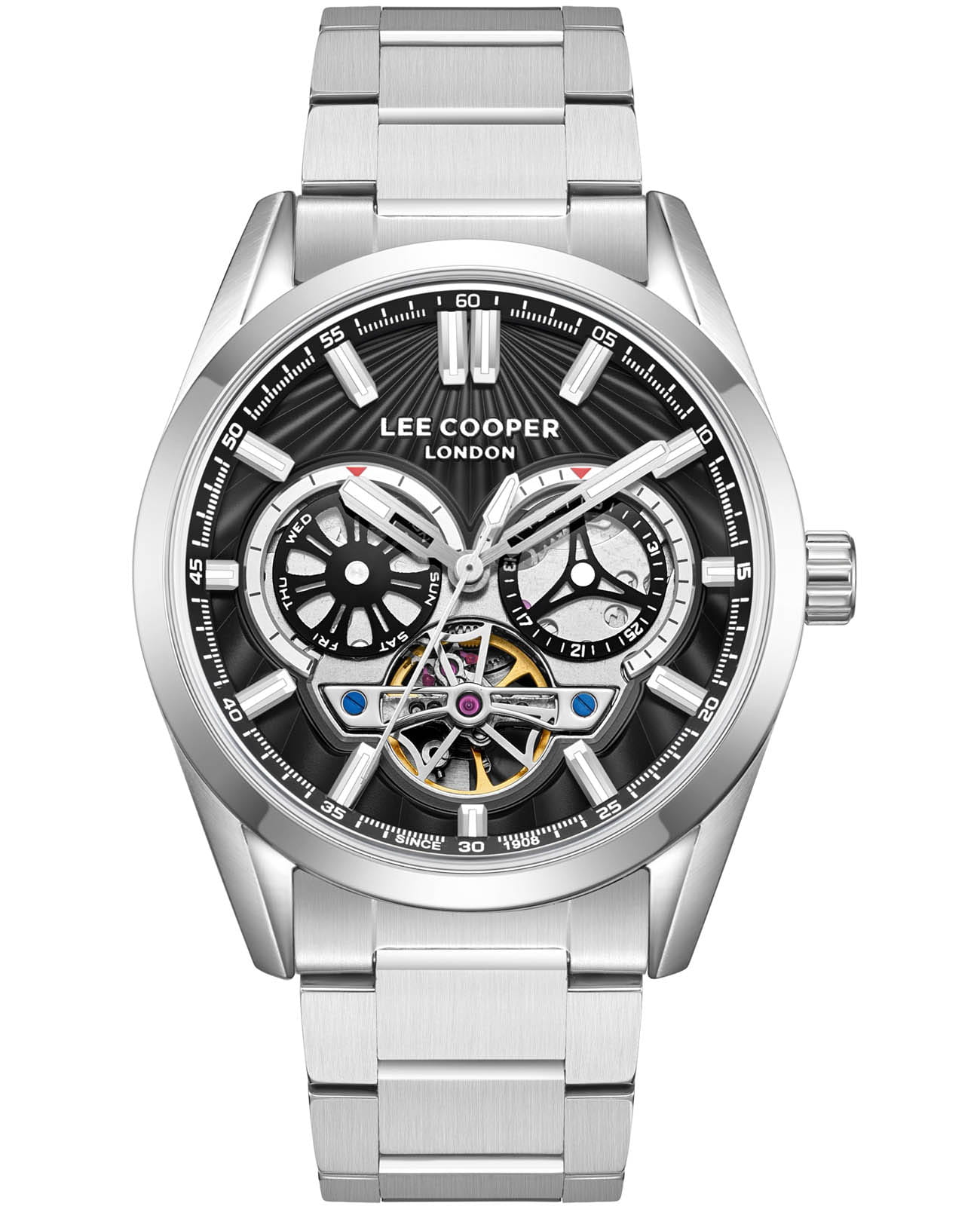 Мужские наручные часы-скелетоны Lee Cooper LC08181.350 механические с автоподзаводом, обеспечивающие высокую точность хода и надежность. Корпус часов выполнен из суперметалла серебристого цвета, диаметром 42 мм, что делает их устойчивыми к внешним воздействиям и придает благородный вид. Циферблат украшен классическими стрелками и метками с люминесцентным покрытиемЛюминесцентное покрытиеПозволяет считывать показания времени в темноте. Производители наносят на стрелки, часовые индексы, безель или поверхность циферблата светонакопительный состав, дающий холодное свечение., гармонично дополняющим общий дизайн модели. Для защиты циферблата используется минеральное стеклоМинеральное стеклоМинеральное стекло представляет собой искусственно выращенный минерал кварца. Такое стекло отличается особой устойчивостью к повреждениям и царапинам. Уступает по некоторым качествам сапфировому стеклу., устойчивое к царапинам и механическим повреждениям. Браслет из стали оснащен раскладной застёжкойРаскладная застёжкаТакой тип застёжки используется только на браслетах из металла. Она никогда не раскрывается полностью, происходит разделение на 2 и более частей. Раскладывающая застёжка снизит вероятность потери часов к минимуму., обеспечивающим комфортное и безопасное ношение. Часы обладают водонепроницаемостью до 50 метров (5 АТМ), что позволяет использовать их в повседневной жизни, включая контакт с водой при мытье рук или дожде. Эти часы станут идеальным выбором для мужчин, ценящих стиль, качество и функциональность.