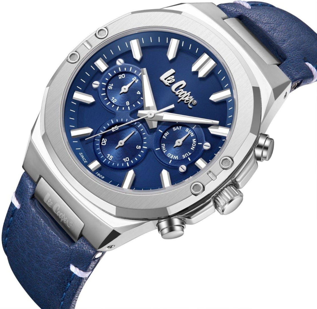 Мужские часы Lee Cooper LC07992.399 – это стильное и современное решение для тех, кто ценит качество и элегантность. Эти часы идеально подойдут как для повседневной носки, так и для особых случаев.  Корпус диаметром 44 мм изготовлен из суперметалла, что обеспечивает долговечность. Минеральное стеклоМинеральное стеклоМинеральное стекло представляет собой искусственно выращенный минерал кварца. Такое стекло отличается особой устойчивостью к повреждениям и царапинам. Уступает по некоторым качествам сапфировому стеклу. надёжно защищает циферблат от царапин и повреждений, сохраняя его безупречный вид. Часы оснащены высокоточным кварцевым механизмом, который гарантирует стабильный ход и надёжность в эксплуатации. Уровень водонепроницаемости 50 метров позволяет не беспокоиться о случайных брызгах воды в повседневной жизни, но не рекомендуется использовать часы при плавании. Удобный и прочный кожаный ремешок синего цвета, выполненный из качественных материалов, дополнен классическим замком, что обеспечивает комфортную посадку и надёжность при носке. Часы LC07992.399 обладают современным и лаконичным дизайном, который прекрасно гармонирует с любым стилем одежды. Эта модель – отличный выбор для тех, кто ищет сочетание стиля, качества и функциональности. Часы станут не только полезным аксессуаром, но и выразительным элементом вашего имиджа.