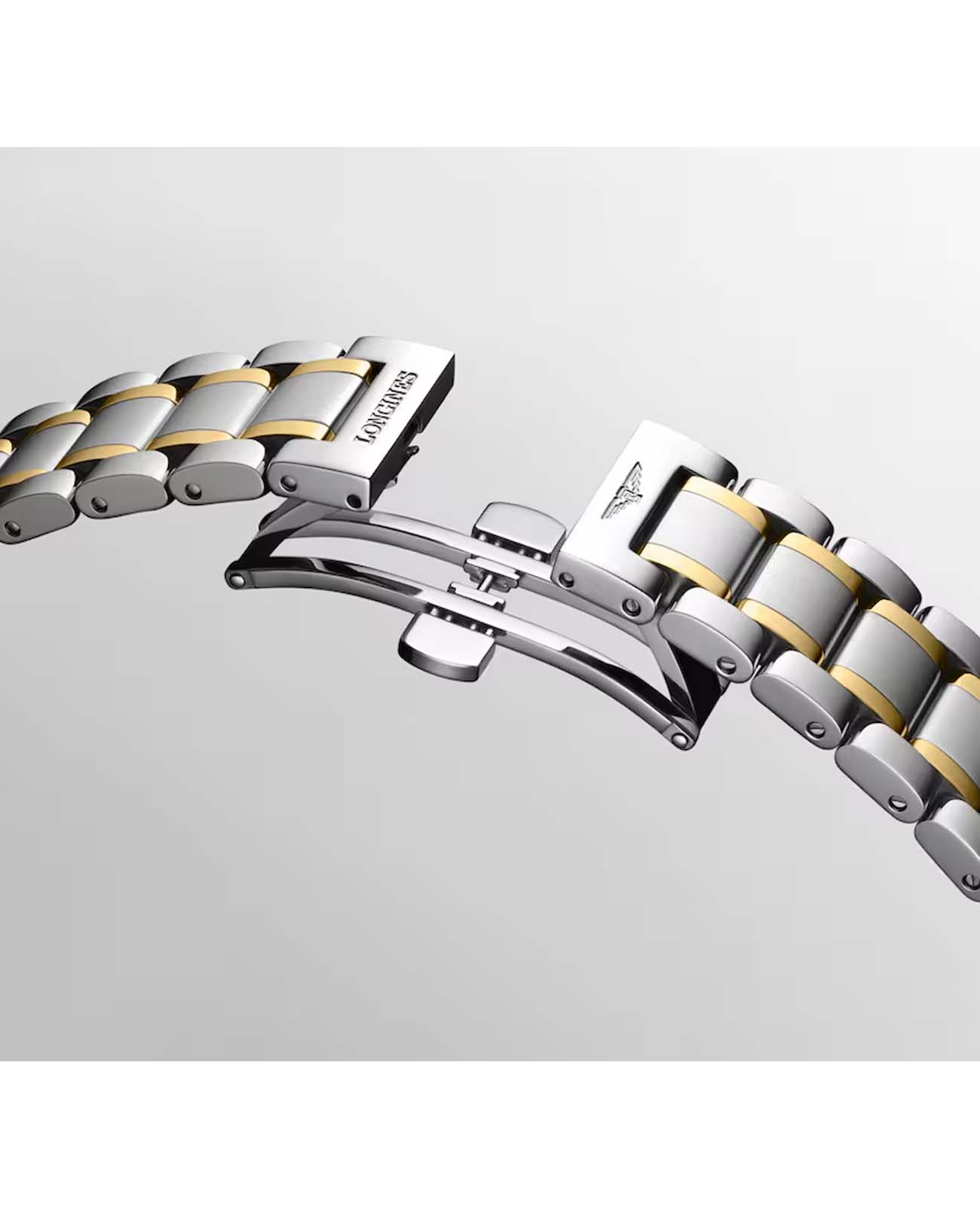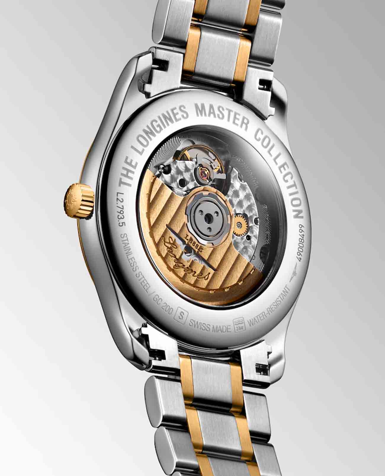 Швейцарские механические часы Longines Master Collection L2.793.5.37.7. Сапфировое стеклоСапфировое стеклоПрочный и надёжный материал из кристалла сапфира синтетического происхождения, характеризующийся особой твёрдостью и устойчивостью к царапинам и повреждениям. устойчивое к появлению царапин, обладающее высокой прозрачностью. Корпус часов изготовлен из нержавеющей стали и 18-каратного золота18-каратное золотоОбозначение по каратной системе пробирования, оно показывает, сколько драгоценного металла содержится в изделии. 18 карат - в составе 75% чистого золота, соответствует 750 пробе.