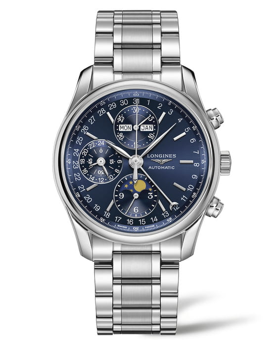 Мужские швейцарские механические часы Longines Master Collection L2.673.4.92.6 – брендовый хронографХронографФункция позволяет измерять отрезки времени с особой точностью: часы, минуты, секунды. Верным признаком хронографа является наличие на циферблате 3 дополнительных окошек-счётчиков. с колонным колесом.