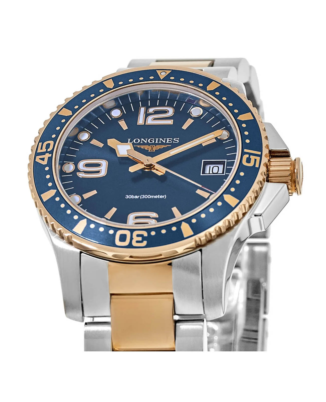 Мужсике швейцарские механические часы с автоподзаводом Longines Hydroconquest L3.340.3.98.7. Сапфировое стеклоСапфировое стеклоПрочный и надёжный материал из кристалла сапфира синтетического происхождения, характеризующийся особой твёрдостью и устойчивостью к царапинам и повреждениям. устойчивое к появлению царапин, обладающее высокой прозрачностью. Корпус часов изготовлен из нержавеющей стали. Вращающийся безельБезельВнешний ободок, закрепляющий стекло. В спортивных часах так называется поворотное кольцо с делениями на циферблате, выполняет роль таймера – замеряет отрезки времени на шкале. Неподвижный безель – элемент декора. Однонаправленно вращающийся безель на дайверских часах позволяет фиксировать моменты погружения и выныривания на поверхность. с PVD-покрытиемPVDУльтратонкое покрытие наносится в технике вакуумного напыления, сочетает в себе нитрид титана особой прочности со слоем золота или оксида хрома. Несёт в себе декоративную или защитную функцию.. Окошко даты в положении 3 часа. Стрелки и метки с люминесцентным покрытиемЛюминесцентное покрытиеПозволяет считывать показания времени в темноте. Производители наносят на стрелки, часовые индексы, безель или поверхность циферблата светонакопительный состав, дающий холодное свечение.. Класс водозащиты: 300 метров, позволит плавать, нырять и заниматься другими водными видами спорта. Стальной браслет с PVD-покрытиемPVDУльтратонкое покрытие наносится в технике вакуумного напыления, сочетает в себе нитрид титана особой прочности со слоем золота или оксида хрома. Несёт в себе декоративную или защитную функцию. на раскладной застёжкеРаскладная застёжкаТакой тип застёжки используется только на браслетах из металла. Она никогда не раскрывается полностью, происходит разделение на 2 и более частей. Раскладывающая застёжка снизит вероятность потери часов к минимуму..
