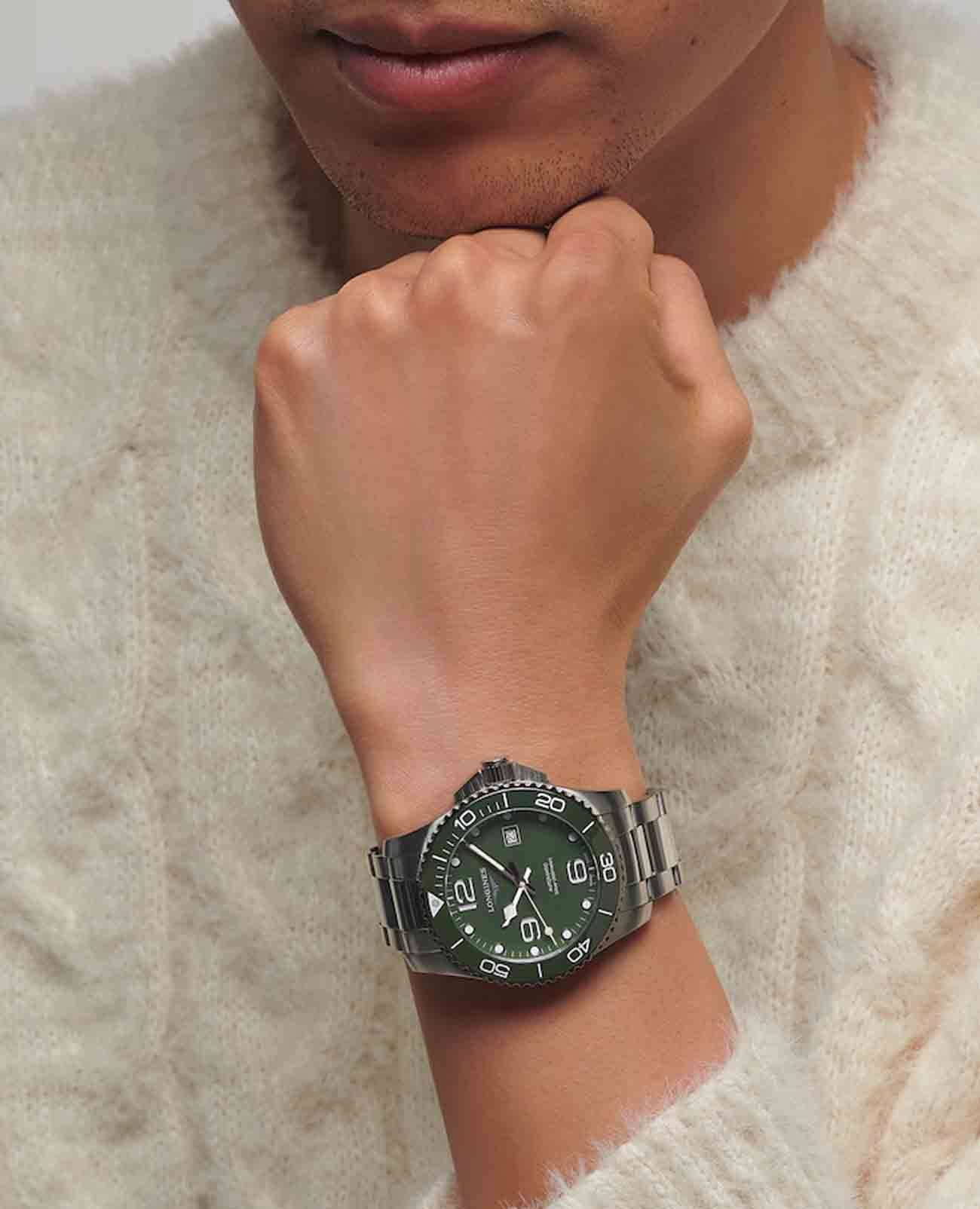 Мужские механические швейцарские часы с автоподзаводом Longines HydroConquest модели L3.782.4.06.6 представляют собой образец надежности и функциональности, созданный специально для любителей активного образа жизни и водных приключений. Особенностью этой модели является сапфировое стеклоСапфировое стеклоПрочный и надёжный материал из кристалла сапфира синтетического происхождения, характеризующийся особой твёрдостью и устойчивостью к царапинам и повреждениям. с антибликовым покрытиемАнтибликовое покрытиеСлой оксида металла в 0,13-0,3 микрон, благодаря которому стекло часов не бликует и не отражает свет. Антибликовое покрытие уменьшает отражение света в 10 раз, обеспечивая отличную читаемость показателей циферблата., которое защищает циферблат от мелких механических повреждений и обеспечивает отличную видимость в любых условиях освещения. Прочное стекло также устойчиво к появлению царапин, сохраняя свой первоначальный внешний вид на протяжении многих лет. Корпус часов выполнен из высококачественной нержавеющей стали, что придает им долговечность и устойчивость к коррозии. Важной деталью является вращающийся стальной безельБезельВнешний ободок, закрепляющий стекло. В спортивных часах так называется поворотное кольцо с делениями на циферблате, выполняет роль таймера – замеряет отрезки времени на шкале. Неподвижный безель – элемент декора. Однонаправленно вращающийся безель на дайверских часах позволяет фиксировать моменты погружения и выныривания на поверхность., изготовленный из комбинации нержавеющей стали и керамики. Такое исполнение обеспечивает не только привлекательный внешний вид, но и повышенную износостойкость: безель защищен от царапин, не теряет своего цвета со временем и сохраняет яркую люминесценцию в темноте. Все элементы циферблата, включая стрелки и метки, покрыты люминесцентным составомЛюминесцентное покрытиеПозволяет считывать показания времени в темноте. Производители наносят на стрелки, часовые индексы, безель или поверхность циферблата светонакопительный состав, дающий холодное свечение. Superluminova, что облегчает считывание времени даже в условиях низкой освещенности. Дата отображается в окошке, расположенном в положении 3 часа, что добавляет дополнительное удобство в повседневном использовании. Класс водозащиты этих часов составляет 300 метров, что делает их идеальными для плавания, ныряния и других водных видов спорта. Надежный стальной браслет оснащен раскладной застёжкойРаскладная застёжкаТакой тип застёжки используется только на браслетах из металла. Она никогда не раскрывается полностью, происходит разделение на 2 и более частей. Раскладывающая застёжка снизит вероятность потери часов к минимуму., обеспечивающей комфортное ношение и легкую регулировку длины.