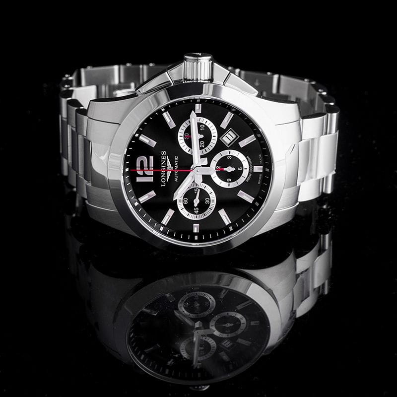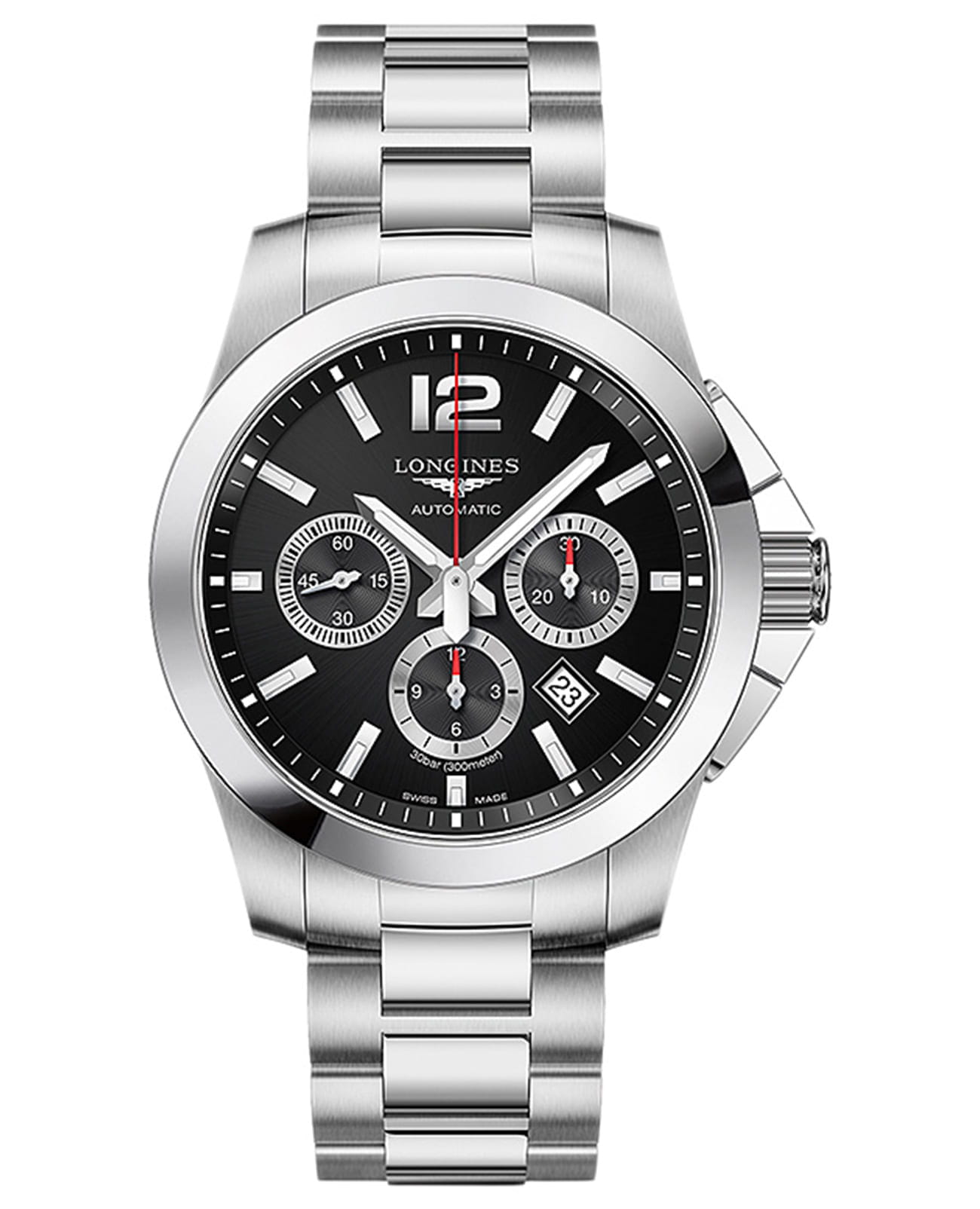 Мужские швейцарские механические часы с хронографом Longines Conquest Collection L3.801.4.56.6, механический механизм (автоматический калибр) с высокой точностью. Сапфировое стекло устойчивое к появлению царапин, обладающее высокой прозрачностью. Класс водозащиты: 300 метров, позволит плавать, нырять и заниматься другими водными видами спорта. Корпус часов изготовлен из стали, цвета.