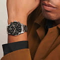 Мужские швейцарские механические часы Longines Spirit Flyback L3.821.4.53.6 – высокоточный хронометр в стильном дизайне. Спортивный хронографХронографФункция позволяет измерять отрезки времени с особой точностью: часы, минуты, секунды. Верным признаком хронографа является наличие на циферблате 3 дополнительных окошек-счётчиков. выпущен в честь известных авиаторов, которые раньше тестировали часы Longines. Модель оснащена швейцарским автоматическим механизмом, чрезвычайно точный механизм с запасом хода 68 часов сертифицирован COSCСертификат COSCОфициальный сертификат, подтверждающий то, что часы ходят с особо высокой точностью. Для получения документа часы подвергаются тестовым испытаниям, разработанным швейцарским институтом тестирования хронометров COSC. Допустимая норма для механических часов -4/+6 секунд в день, для кварцевых моделей +/- 0,07 секунд в день.. Дополнительные особенности: сапфировое стеклоСапфировое стеклоПрочный и надёжный материал из кристалла сапфира синтетического происхождения, характеризующийся особой твёрдостью и устойчивостью к царапинам и повреждениям. с двухсторонним антибликовым покрытиемАнтибликовое покрытиеСлой оксида металла в 0,13-0,3 микрон, благодаря которому стекло часов не бликует и не отражает свет. Антибликовое покрытие уменьшает отражение света в 10 раз, обеспечивая отличную читаемость показателей циферблата., люминесцентная подсветкаЛюминесцентное покрытиеПозволяет считывать показания времени в темноте. Производители наносят на стрелки, часовые индексы, безель или поверхность циферблата светонакопительный состав, дающий холодное свечение.. Часы, минуты, малая секундная стрелка в положении 9 часов. Он оснащен двунаправленным безелемБезельВнешний ободок, закрепляющий стекло. В спортивных часах так называется поворотное кольцо с делениями на циферблате, выполняет роль таймера – замеряет отрезки времени на шкале. Неподвижный безель – элемент декора. Однонаправленно вращающийся безель на дайверских часах позволяет фиксировать моменты погружения и выныривания на поверхность., дополненным керамической вставкой с люминесцентнымЛюминесцентное покрытиеПозволяет считывать показания времени в темноте. Производители наносят на стрелки, часовые индексы, безель или поверхность циферблата светонакопительный состав, дающий холодное свечение. метками и циферблатом в виде солнечных лучей. Класс водозащиты: 100 метров, позволит плавать, нырять и заниматься другими водными видами спорта. Стальной браслет на раскладной застёжкеРаскладная застёжкаТакой тип застёжки используется только на браслетах из металла. Она никогда не раскрывается полностью, происходит разделение на 2 и более частей. Раскладывающая застёжка снизит вероятность потери часов к минимуму.