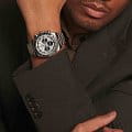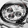 Мужские швейцарские механические часы- хронографХронографФункция позволяет измерять отрезки времени с особой точностью: часы, минуты, секунды. Верным признаком хронографа является наличие на циферблате 3 дополнительных окошек-счётчиков. Longines Conquest L3.835.4.72.6. Сапфировое стеклоСапфировое стеклоПрочный и надёжный материал из кристалла сапфира синтетического происхождения, характеризующийся особой твёрдостью и устойчивостью к царапинам и повреждениям. с многослойным антибликовым покрытием с обеих сторон, устойчивое к появлению царапин, обладающее высокой прозрачностью. Корпус часов изготовлен из стали. Неподвижный безельБезельВнешний ободок, закрепляющий стекло. В спортивных часах так называется поворотное кольцо с делениями на циферблате, выполняет роль таймера – замеряет отрезки времени на шкале. Неподвижный безель – элемент декора. Однонаправленно вращающийся безель на дайверских часах позволяет фиксировать моменты погружения и выныривания на поверхность. из стали и керамики, защищенный от царапин, никогда не изнашивается и не выцветает. Шкала тахиметраТахиметрРазмеченная шкала, располагается на ободке или безеле часов. Тахиметр позволяет рассчитать скорость на определённом участке пути, расстояние измеряется в километрах или милях.. На циферблате расположены три дополнительных циферблата. Стрелки и метки с люминесцентным покрытиемЛюминесцентное покрытиеПозволяет считывать показания времени в темноте. Производители наносят на стрелки, часовые индексы, безель или поверхность циферблата светонакопительный состав, дающий холодное свечение.. Класс водозащиты: 100 метров, позволит плавать, нырять и заниматься другими водными видами спорта. Стальной браслет на раскладной застёжкеРаскладная застёжкаТакой тип застёжки используется только на браслетах из металла. Она никогда не раскрывается полностью, происходит разделение на 2 и более частей. Раскладывающая застёжка снизит вероятность потери часов к минимуму..