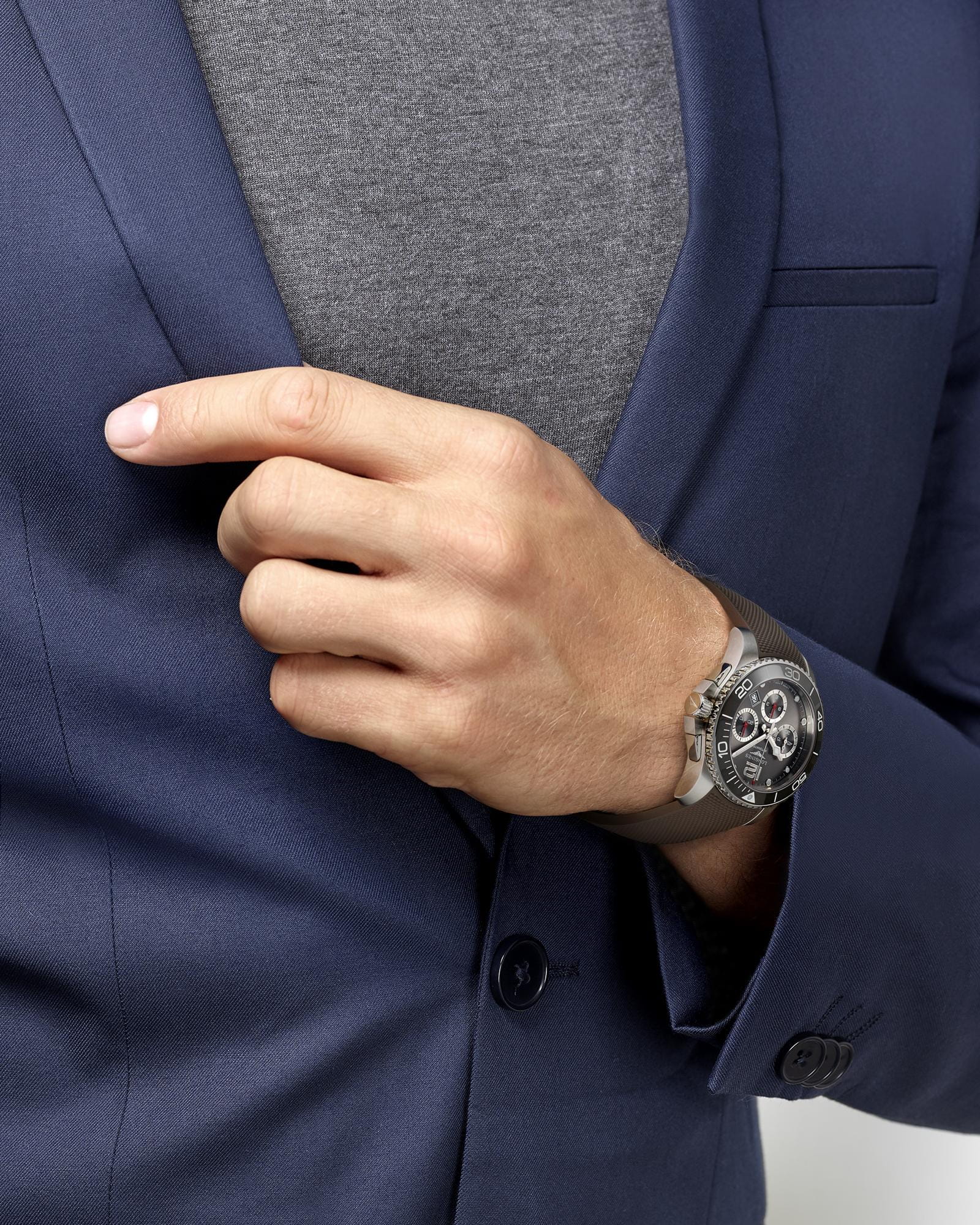 Циферблат с крупной индикацией времени дополнен контрастными стрелками и метками с люминесцентной подсветкойЛюминесцентное покрытиеПозволяет считывать показания времени в темноте. Производители наносят на стрелки, часовые индексы, безель или поверхность циферблата светонакопительный состав, дающий холодное свечение.. Корпус выполнен из нержавеющей стали и керамики. Устойчивое к царапинам сапфировое стекло имеет антибликовое покрытиеАнтибликовое покрытиеСлой оксида металла в 0,13-0,3 микрон, благодаря которому стекло часов не бликует и не отражает свет. Антибликовое покрытие уменьшает отражение света в 10 раз, обеспечивая отличную читаемость показателей циферблата.. Швейцарский автоматический механизм L688 имеет резерв хода на 54 часа.