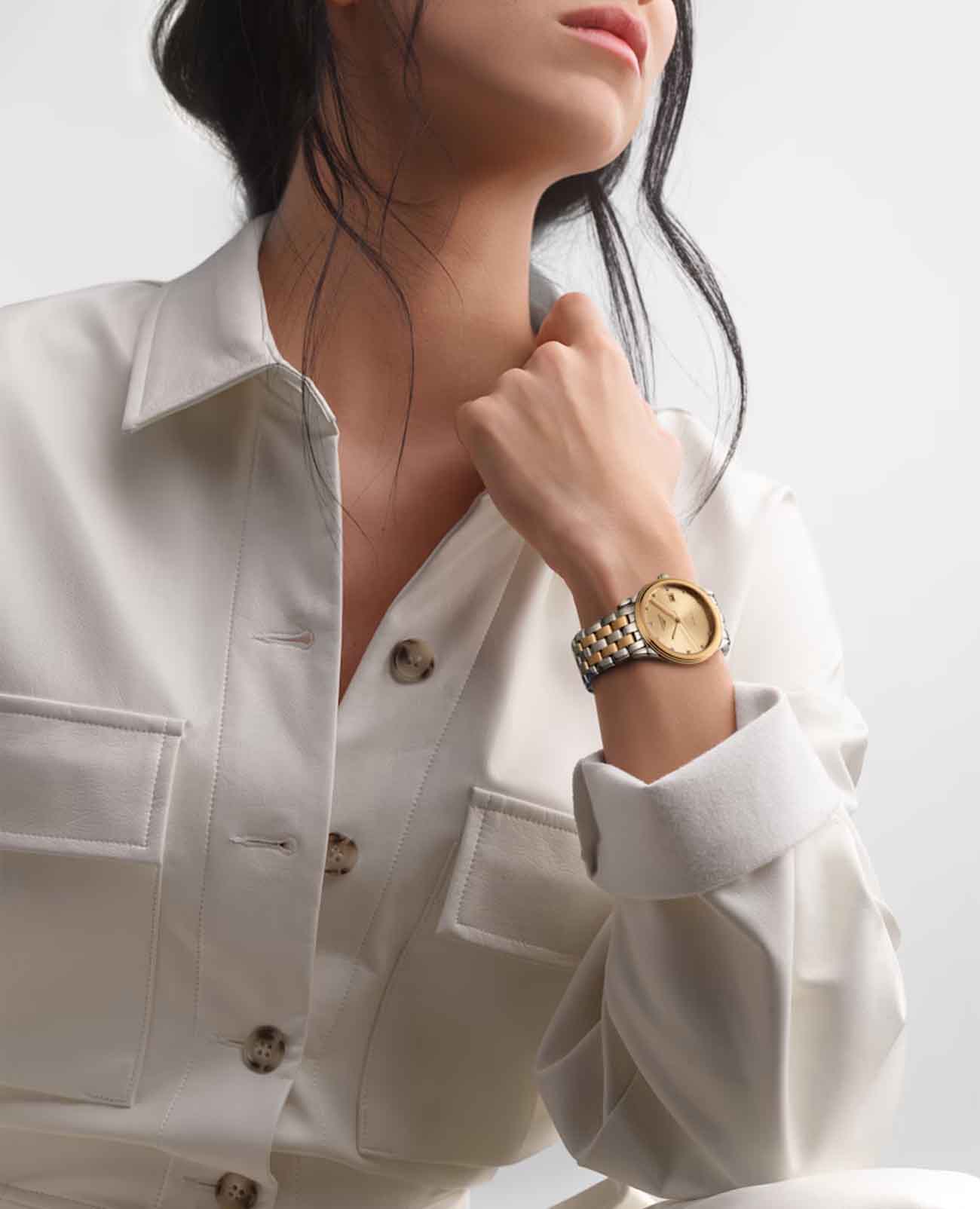 Корпус из нержавеющей стали с частичным PVD-покрытиемPVDУльтратонкое покрытие наносится в технике вакуумного напыления, сочетает в себе нитрид титана особой прочности со слоем золота или оксида хрома. Несёт в себе декоративную или защитную функцию., который прошёл тщательную обработку, не только защищает швейцарский автоматический механизм L888, но и придаёт часам прочность и долговечность. Запас хода на 64 часа гарантирует, что часы будут работать безупречно в течение нескольких дней. Стальной браслет с частичным PVD-покрытиемPVDУльтратонкое покрытие наносится в технике вакуумного напыления, сочетает в себе нитрид титана особой прочности со слоем золота или оксида хрома. Несёт в себе декоративную или защитную функцию. на застёжке «бабочка» с кнопкамиЗастёжка "бабочка"Такой вид застёжки дополняется предохранителями, помогающими избежать случайного раскрытия браслета. Обладают изящным исполнением.