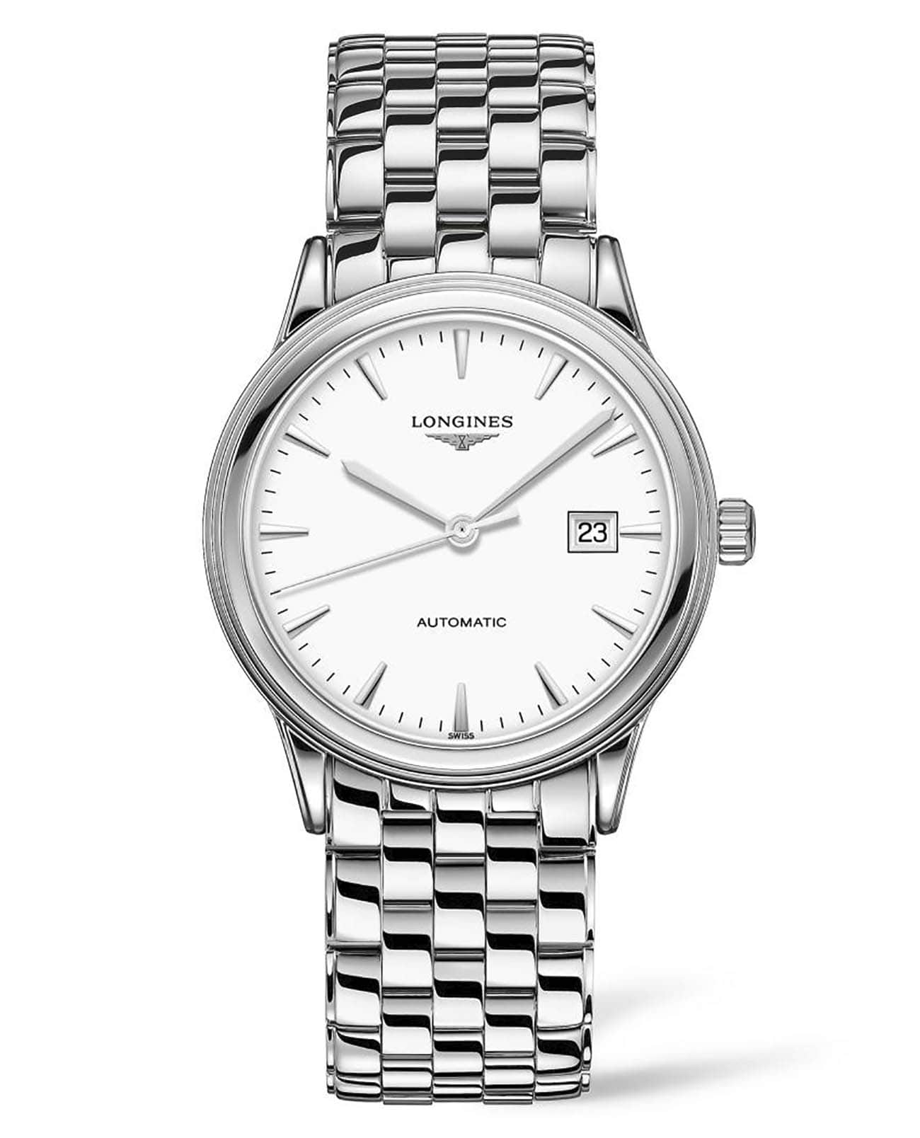 Мужские швейцарские часы Longines Flagship L4.984.4.12.6 очаровывают своим роскошным сиянием. Циферблат украшен посеребренными полированными стрелками. Корпус из нержавеющей стали 316L надёжно защищает швейцарский кварцевый механизм L888. Сапфировое стеклоСапфировое стеклоПрочный и надёжный материал из кристалла сапфира синтетического происхождения, характеризующийся особой твёрдостью и устойчивостью к царапинам и повреждениям., устойчивое к царапинам, дополнено многослойным антибликовым покрытиемАнтибликовое покрытиеСлой оксида металла в 0,13-0,3 микрон, благодаря которому стекло часов не бликует и не отражает свет. Антибликовое покрытие уменьшает отражение света в 10 раз, обеспечивая отличную читаемость показателей циферблата.. Производство и сборка: Швейцария.
