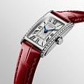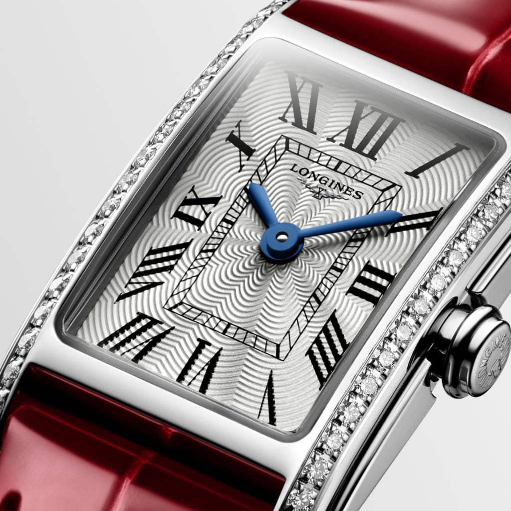 Женские швейцарские часы Longines DolceVita L5.258.0.71.5, кварцевый механизм с высокой точностью. Сапфировое стеклоСапфировое стеклоПрочный и надёжный материал из кристалла сапфира синтетического происхождения, характеризующийся особой твёрдостью и устойчивостью к царапинам и повреждениям. устойчивое к появлению царапин, обладающее высокой прозрачностью. Корпус часов изготовлен из нержавеющей стали с 36 бриллиантами группы Top Wesselton IF-VVS общим весом 0.280 карата. Метки в виде римских цифр. Класс водозащиты: 30 метров, позволит защитить корпус от случайных брызг или капель дождя. Ремешок из кожи аллигатора на стандартной застежке.