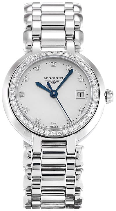 Женские швейцарские часы с бриллиантами Longines PrimaLuna L8.110.0.87.6, кварцевый механизм с высокой точностью. Сапфировое стекло устойчивое к появлению царапин, обладающее высокой прозрачностью. Класс водозащиты: 30 метров, позволит защитить корпус от случайных брызг или капель дождя. Корпус часов изготовлен из стали, цвета.