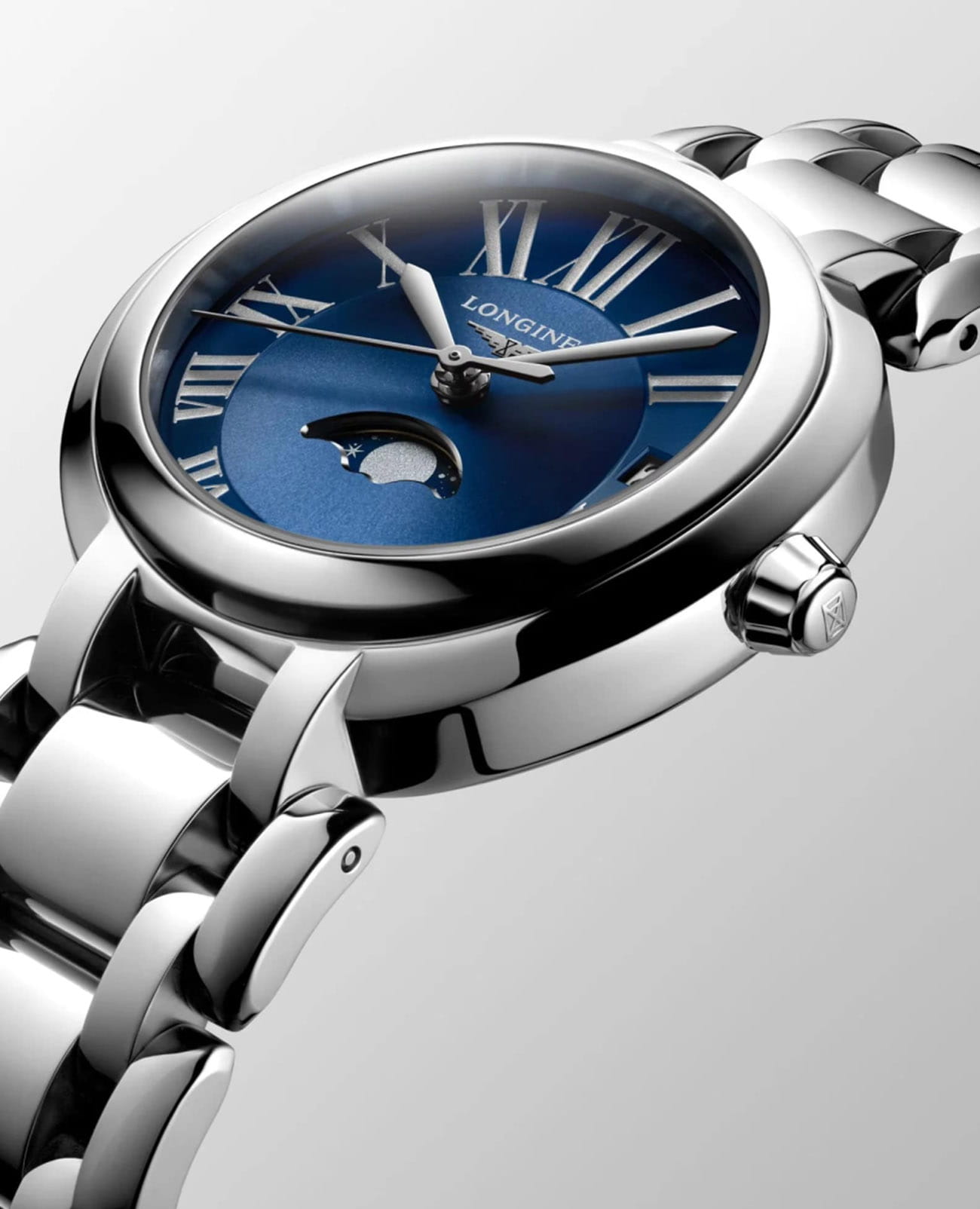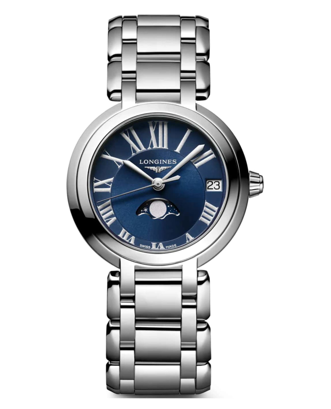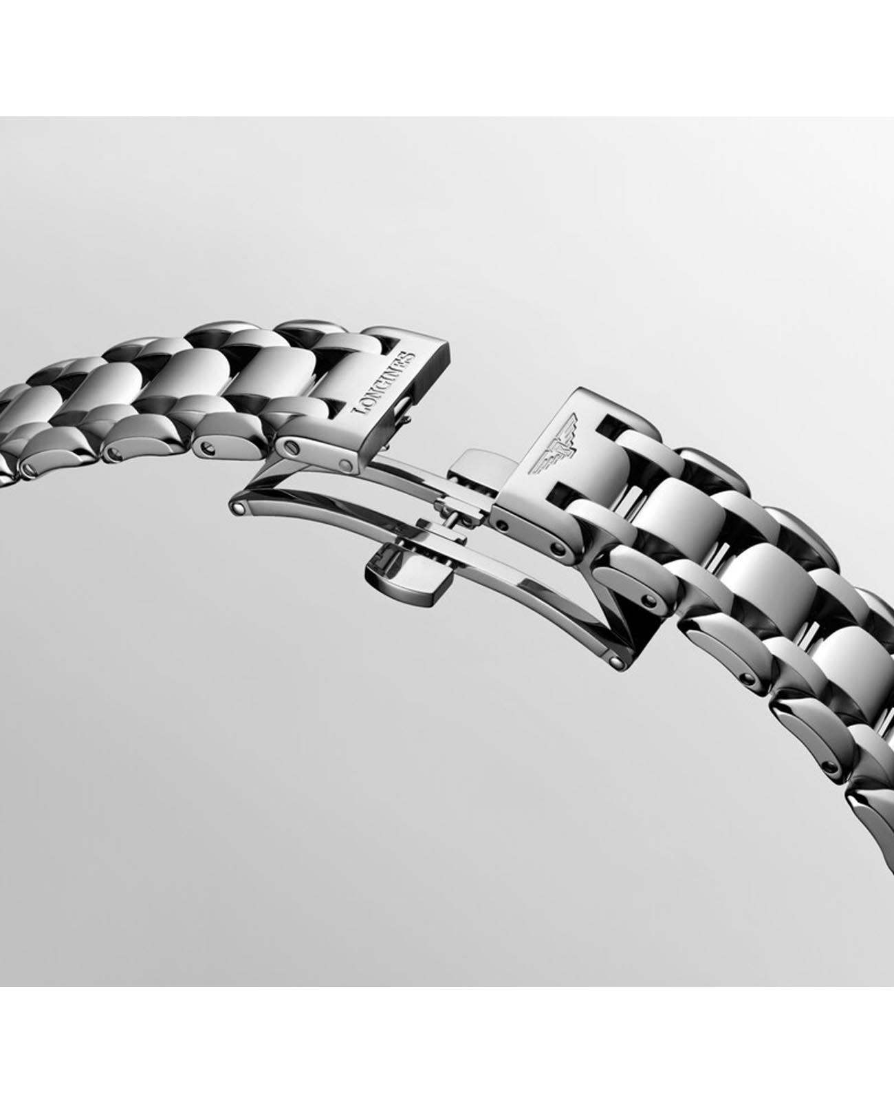 Женские швейцарские часы Longines PrimaLuna L81154916, кварцевый механизм с высокой точностью. Исключительно женственная коллекция. Округлые, нежные линии Longines Prima Luna - дань преклонения перед женственной Луной, символом переменчивости времени. Сапфировое стеклоСапфировое стеклоПрочный и надёжный материал из кристалла сапфира синтетического происхождения, характеризующийся особой твёрдостью и устойчивостью к царапинам и повреждениям. устойчивое к появлению царапин, обладающее высокой прозрачностью. Корпус часов изготовлен из нержавеющей стали. Окошко даты в положении 3 часов. Указатель фазы луны в положении 6 часов. Класс водозащиты: 30 метров, позволит защитить корпус от случайных брызг или капель дождя. Стальной браслет на застёжке «бабочка» с кнопкамиЗастёжка "бабочка"Такой вид застёжки дополняется предохранителями, помогающими избежать случайного раскрытия браслета. Обладают изящным исполнением. .