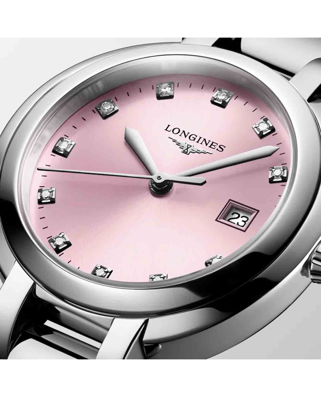Женские швейцарские часы Longines PrimaLuna L81224996, кварцевый механизм с высокой точностью. Исключительно женственная коллекция. Округлые, нежные линии Longines Prima Luna - дань преклонения перед женственной Луной, символом переменчивости времени. Сапфировое стеклоСапфировое стеклоПрочный и надёжный материал из кристалла сапфира синтетического происхождения, характеризующийся особой твёрдостью и устойчивостью к царапинам и повреждениям. устойчивое к появлению царапин, обладающее высокой прозрачностью. Корпус часов изготовлен из нержавеющей стали. Изысканная чистота циферблата подчеркивает ее мягкий силуэт, обрамленный сиянием бриллиантов. Окошко даты в положении 3 часов. Класс водозащиты: 30 метров, позволит защитить корпус от случайных брызг или капель дождя. Стальной браслет на застёжке «бабочка» с кнопкамиЗастёжка "бабочка"Такой вид застёжки дополняется предохранителями, помогающими избежать случайного раскрытия браслета. Обладают изящным исполнением. .