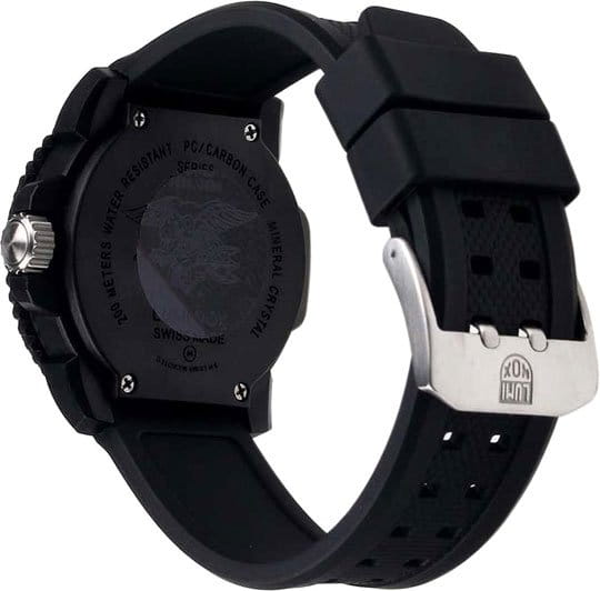 Эффектные швейцарские наручные часы - идеальны для современного ритма жизни. 12-ти и 24-х часовой формат времени. Безел ь вращается в одном направлении. Стальная заводная головка с защитой. В комплекте: сменный нейлоновый ремешок и инструмент для его замены. Материал корпуса: пластик, усиленный прессованный карбон; Материал браслета: полиуретановый с гравировкой; Стекло: Сапфировое; Водозащита: 200 м. (WR 200).