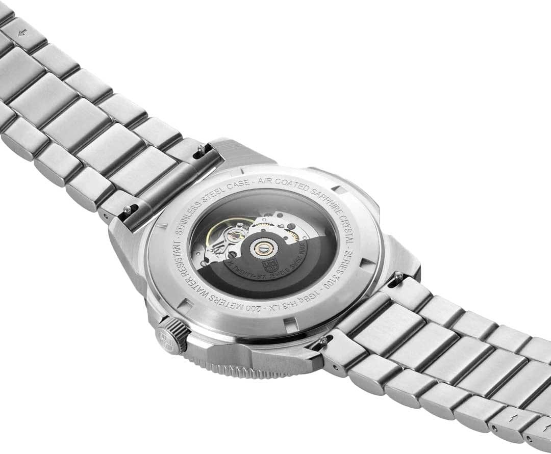 Часы Luminox XS.3104 — истинное воплощение швейцарского качества и современного стиля. Эти мужские часы, оснащённые механизмом с автоподзаводом, предлагают безупречную точность и надёжность, благодаря использованию калибра Sellita SW 220-1 с 26 камнями. Корпус выполнен из высококачественной стали 316L, что придаёт дополнительную прочность и устойчивость к износу. Чёрный циферблат защищён сапфировым стекломСапфировое стеклоПрочный и надёжный материал из кристалла сапфира синтетического происхождения, характеризующийся особой твёрдостью и устойчивостью к царапинам и повреждениям. с антибликовым покрытиемАнтибликовое покрытиеСлой оксида металла в 0,13-0,3 микрон, благодаря которому стекло часов не бликует и не отражает свет. Антибликовое покрытие уменьшает отражение света в 10 раз, обеспечивая отличную читаемость показателей циферблата., что позволяет с лёгкостью считывать показания даже при ярком освещении. Часы обладают функцией отображения даты и дня недели, расположенной в удобном окошке в позиции 3 часа. Вращающийся в одном направлении керамический безельБезельВнешний ободок, закрепляющий стекло. В спортивных часах так называется поворотное кольцо с делениями на циферблате, выполняет роль таймера – замеряет отрезки времени на шкале. Неподвижный безель – элемент декора. Однонаправленно вращающийся безель на дайверских часах позволяет фиксировать моменты погружения и выныривания на поверхность. обеспечивает дополнительную функциональность и стильный вид. Благодаря технологии LLTLLTLLT — это автономный механизм подсветки, основанный на использовании микроскопических газонаполненных элементов. Специальные герметичные капсулы из боросиликатного стекла, интегрированные в циферблат, генерируют свечение без необходимости подключения к внешним источникам энергии. Для их работы не требуется ни дополнительный свет, ни механическое воздействие (например, нажатие кнопки). Свечение возникает благодаря химическому процессу: реакция между тритием, заключенным в капсулах, и люминофорным покрытием создает стабильное автономное освещение. Технология обеспечивает энергетическую независимость и долговечность подсветки.-подсветки, эти часы гарантируют превосходную видимость в темноте на протяжении 25 лет. Завинчивающаяся заводная головка с защитой и прозрачная задняя крышка подчёркивают внимание к деталям и практичность дизайна. Стальной браслет, изготовленный из того же материала, что и корпус, оснащён раскладной застёжкойРаскладная застёжкаТакой тип застёжки используется только на браслетах из металла. Она никогда не раскрывается полностью, происходит разделение на 2 и более частей. Раскладывающая застёжка снизит вероятность потери часов к минимуму. с системой блокировки, обеспечивая надёжную фиксацию на запястье. Водозащита уровня 200WR позволяет использовать часы даже в условиях повышенной влажности. Габаритные размеры составляют 42 мм в диаметре, 13 мм в толщину, с шириной браслета 24 мм и весом 180 г, что делает их идеальным выбором для тех, кто ценит стиль и функциональность в одном аксессуаре.