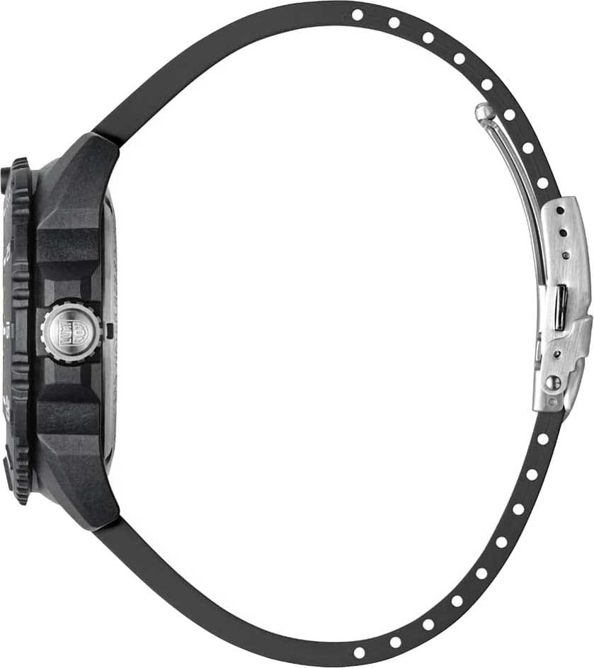 Швейцарские кварцевые часы Luminox XS.3602.NSF идеально сочетают в себе современный стиль и надежность. Благодаря корпусу из пластика, усиленного прессованным карбономКарбонОт «carbon», «carbone» - углерод, углепластик - полимерный композиционный материал из переплетённых под определенным углом между собой нитей углеродного волокна, применяется для изготовления лёгких, но прочных деталей. В часах часто используют для украшения циферблатов и ремешков. Так же карбон используется в изготовлении корпусов. Такие корпуса обладают антикоррозионным свойством, не поддаются электромагнитному излучению, обладают повышенной прочностью и противоударностью., они отличаются прочностью и малым весом. Синий циферблат подчеркивает спортивный дизайн модели, а каучуковый ремешок с раскладной застёжкойРаскладная застёжкаТакой тип застёжки используется только на браслетах из металла. Она никогда не раскрывается полностью, происходит разделение на 2 и более частей. Раскладывающая застёжка снизит вероятность потери часов к минимуму. обеспечивает комфорт при носке. Часы обладают водозащитой на глубине до 200 метров, что делает их идеальным выбором для любителей водных видов спорта. LLTLLTLLT — это автономный механизм подсветки, основанный на использовании микроскопических газонаполненных элементов. Специальные герметичные капсулы из боросиликатного стекла, интегрированные в циферблат, генерируют свечение без необходимости подключения к внешним источникам энергии. Для их работы не требуется ни дополнительный свет, ни механическое воздействие (например, нажатие кнопки). Свечение возникает благодаря химическому процессу: реакция между тритием, заключенным в капсулах, и люминофорным покрытием создает стабильное автономное освещение. Технология обеспечивает энергетическую независимость и долговечность подсветки.-подсветка гарантирует отличную видимость в темное время суток, а сапфировое стеклоСапфировое стеклоПрочный и надёжный материал из кристалла сапфира синтетического происхождения, характеризующийся особой твёрдостью и устойчивостью к царапинам и повреждениям. с антибликовым покрытиемАнтибликовое покрытиеСлой оксида металла в 0,13-0,3 микрон, благодаря которому стекло часов не бликует и не отражает свет. Антибликовое покрытие уменьшает отражение света в 10 раз, обеспечивая отличную читаемость показателей циферблата. защищает от царапин и обеспечивает четкость отображения. Модель оснащена функцией календаря с окошком даты, дополненным увеличительным стеклом для удобства использования. Часы поддерживают 12-ти и 24-х часовой формат времени, а вращающийся в одном направлении безельБезельВнешний ободок, закрепляющий стекло. В спортивных часах так называется поворотное кольцо с делениями на циферблате, выполняет роль таймера – замеряет отрезки времени на шкале. Неподвижный безель – элемент декора. Однонаправленно вращающийся безель на дайверских часах позволяет фиксировать моменты погружения и выныривания на поверхность. позволяет отслеживать время погружения или других активностей. Задняя крышка и заводная головка выполнены из стали, что добавляет дополнительную прочность конструкции. Заводная головка с защитой предотвращает случайное изменение времени. Благодаря диаметру в 45 мм и толщине 14 мм, эти часы обладают внушительным 