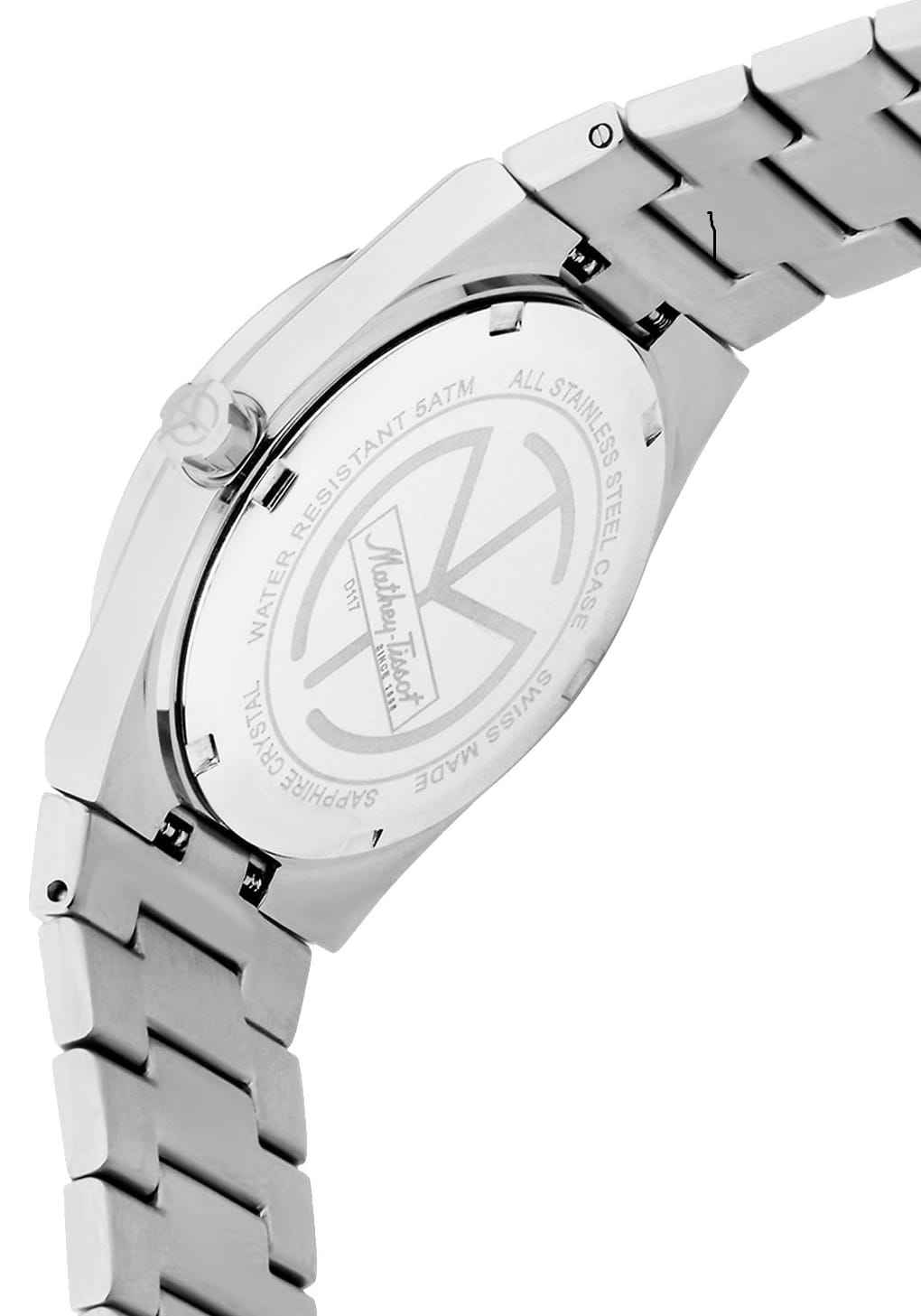 Женские кварцевые часы Mathey-Tissot Zoltan D117ABU — это стильное сочетание элегантности и современного дизайна. Изящный корпус выполнен из нержавеющей стали серебристого цвета, диаметром 34 мм, что придаст образу женственности и романтизма. Изысканный циферблат с метками в виде штрихов придает модели особый блеск. Циферблат защищен сапфировым стекломСапфировое стеклоПрочный и надёжный материал из кристалла сапфира синтетического происхождения, характеризующийся особой твёрдостью и устойчивостью к царапинам и повреждениям., обеспечивающий устойчивость к царапинам. Стрелки и метки с люминесцентным покрытиемЛюминесцентное покрытиеПозволяет считывать показания времени в темноте. Производители наносят на стрелки, часовые индексы, безель или поверхность циферблата светонакопительный состав, дающий холодное свечение.. Окошко даты находится в положении 3 часа. Часы оснащены надежным кварцевым механизмом. Стальной браслет на застёжке-бабочке с кнопкамиЗастёжка "бабочка"Такой вид застёжки дополняется предохранителями, помогающими избежать случайного раскрытия браслета. Обладают изящным исполнением. , гарантирует комфортное и безопасное ношение. Класс водозащиты: 50 метров позволит защитить корпус от случайных брызг или капель дождя. Mathey-Tissot  — отличный выбор для тех, кто ценит утонченность и качество.