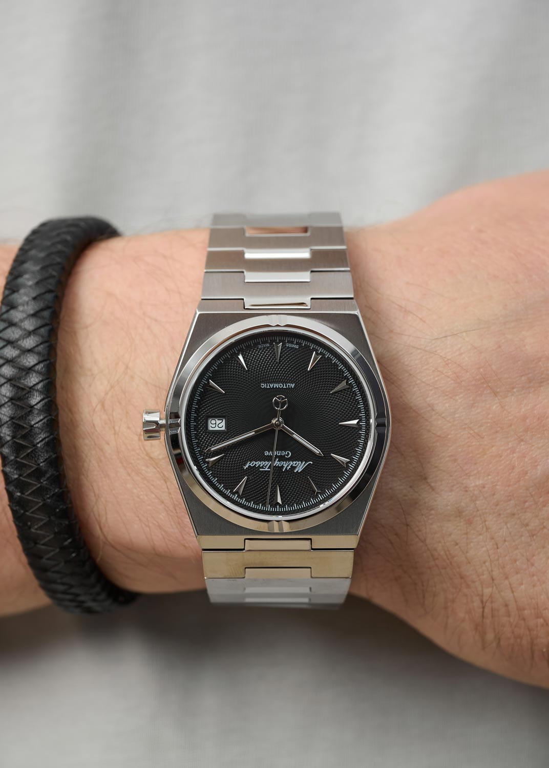 Мужские механические часы с автоподзаводом Mathey-Tissot Zeus H118ATAN — это стильное сочетание элегантности и современного дизайна. Изящный корпус выполнен из нержавеющей стали, диаметром 41 мм и толщиной 12 мм, что придаст образу элегантности и надежности. Изысканный циферблат с метками в виде штрихов придает модели особый блеск. Циферблат защищен сапфировым стекломСапфировое стеклоПрочный и надёжный материал из кристалла сапфира синтетического происхождения, характеризующийся особой твёрдостью и устойчивостью к царапинам и повреждениям., обеспечивающий устойчивость к царапинам. Стрелки с люминесцентным покрытиемЛюминесцентное покрытиеПозволяет считывать показания времени в темноте. Производители наносят на стрелки, часовые индексы, безель или поверхность циферблата светонакопительный состав, дающий холодное свечение. SuperLumiNova, которое светится в темноте после непродолжительной зарядки на свету. Окошко даты находится в положении 3 часа. Стальной браслет на застёжке-бабочке с кнопкамиЗастёжка "бабочка"Такой вид застёжки дополняется предохранителями, помогающими избежать случайного раскрытия браслета. Обладают изящным исполнением. , гарантирует комфортное и безопасное ношение. Класс водозащиты: 50 метров позволит защитить корпус от случайных брызг или капель дождя. Mathey-Tissot  — отличный выбор для тех, кто ценит утонченность и качество.