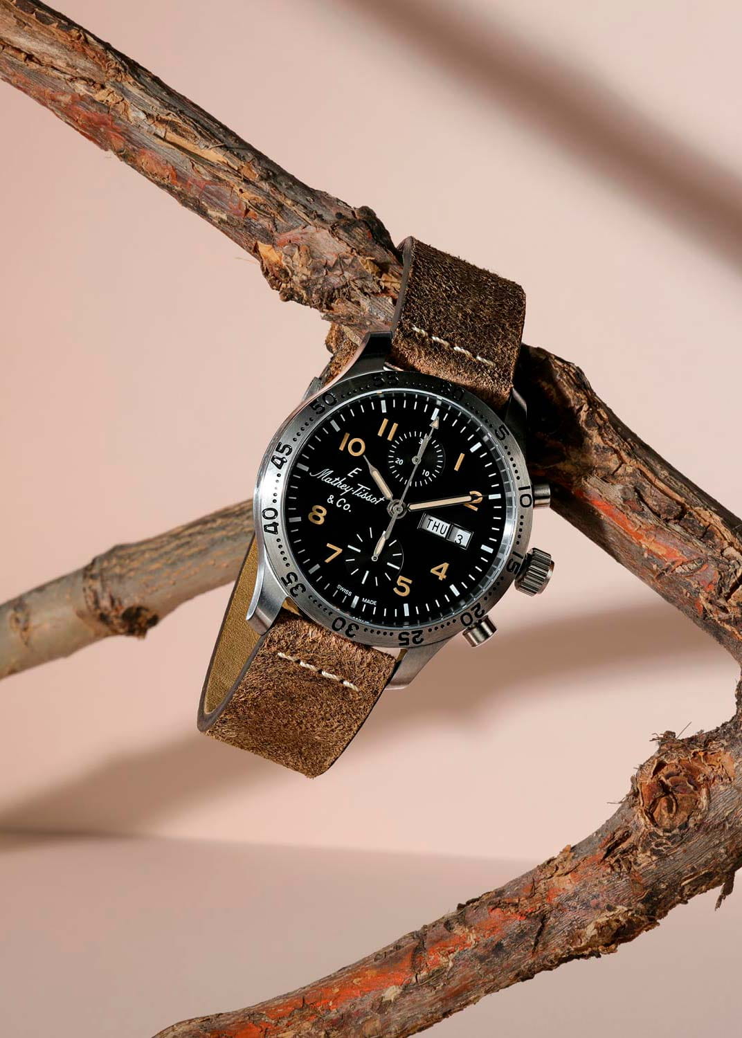 Мужские механические с автоподзаводом часы-хронографХронографФункция позволяет измерять отрезки времени с особой точностью: часы, минуты, секунды. Верным признаком хронографа является наличие на циферблате 3 дополнительных окошек-счётчиков. с секундомеромСекундомерСекундоме́р — прибор, способный измерять интервалы времени с точностью до долей секунды. Mathey-Tissot Type 21 H1821CHATLNO — это стильное сочетание элегантности и современного дизайна. Изящный корпус выполнен из нержавеющей стали, диаметром 42 мм, что придаст образу элегантности и надежности. Изысканный циферблат с метками в виде арабских цифр придает модели особый блеск. Циферблат защищен сапфировым стекломСапфировое стеклоПрочный и надёжный материал из кристалла сапфира синтетического происхождения, характеризующийся особой твёрдостью и устойчивостью к царапинам и повреждениям., обеспечивает устойчивость к царапинам. Стрелки с люминесцентным покрытиемЛюминесцентное покрытиеПозволяет считывать показания времени в темноте. Производители наносят на стрелки, часовые индексы, безель или поверхность циферблата светонакопительный состав, дающий холодное свечение.. Окошко даты находится в положении 3 часа. Кожаный ремешок на застёжке «бабочка» с кнопкамиЗастёжка "бабочка"Такой вид застёжки дополняется предохранителями, помогающими избежать случайного раскрытия браслета. Обладают изящным исполнением. , гарантирует комфортное и безопасное ношение. Рифленая заводная головка. Класс водозащиты: 50 метров позволит защитить корпус от случайных брызг или капель дождя. Mathey-Tissot  — отличный выбор для тех, кто ценит утонченность и качество.