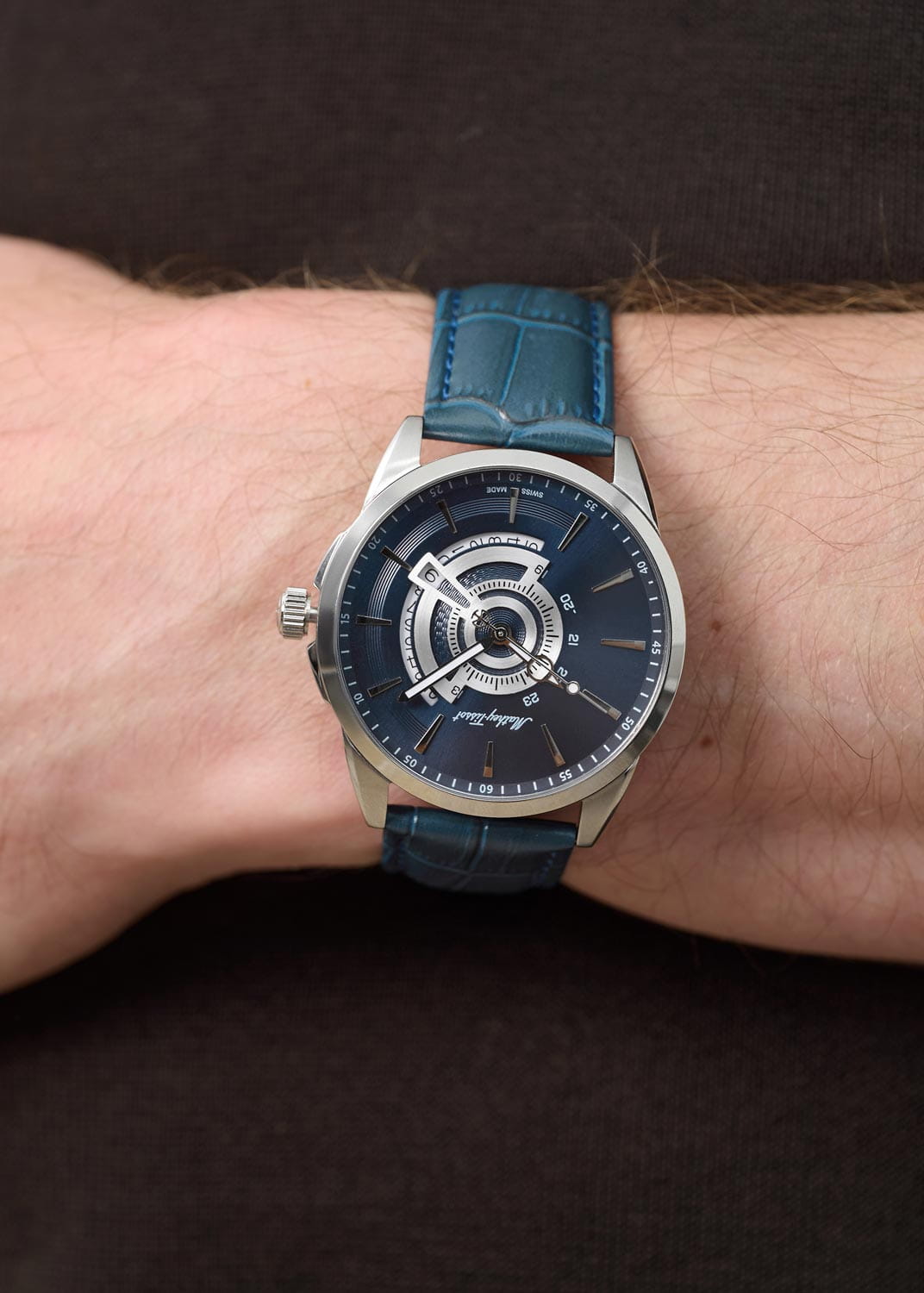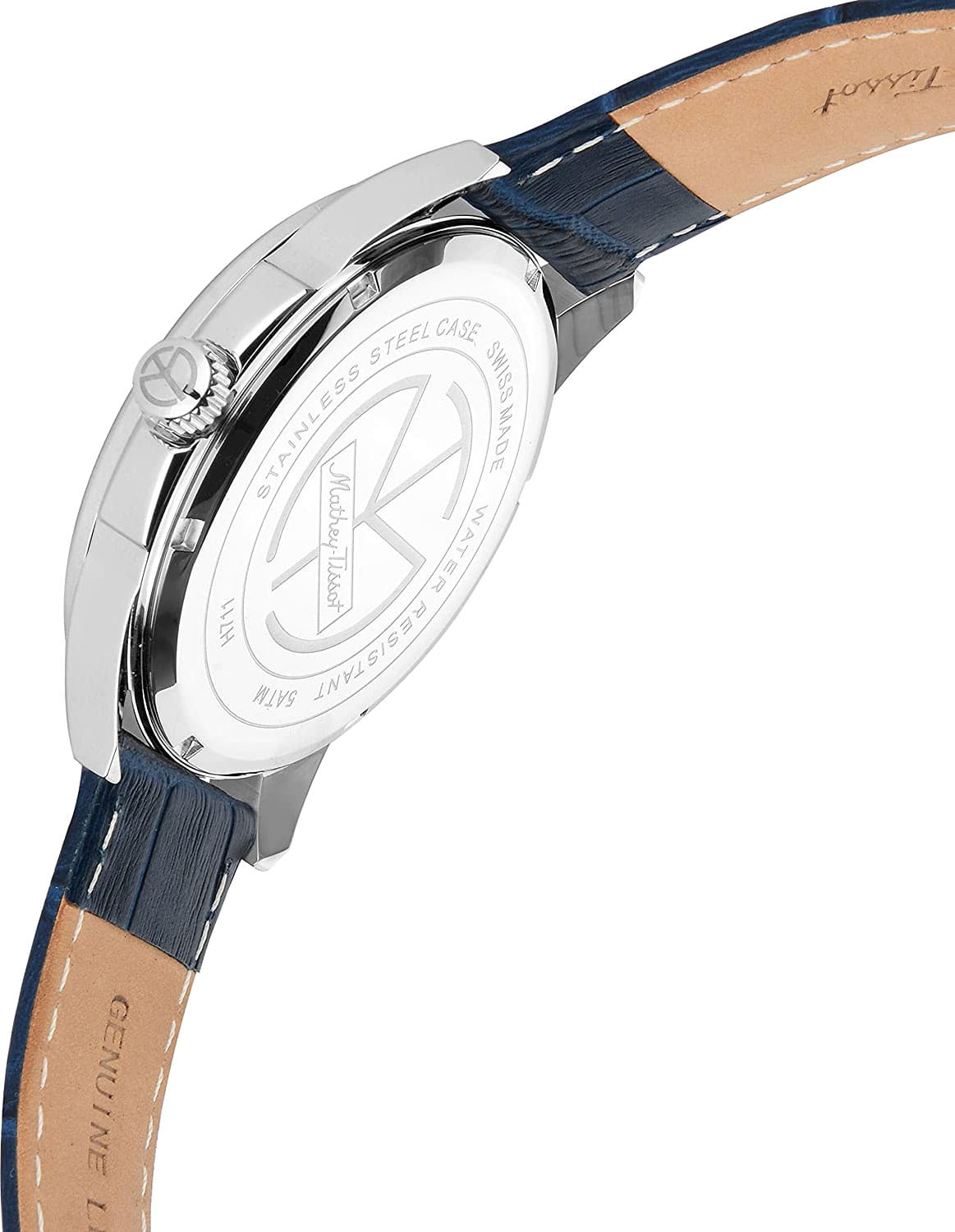 Мужские кварцевые часы Mathey-Tissot Mondo H711ABU — это стильное сочетание элегантности и современного дизайна. Изящный корпус выполнен из нержавеющей стали, диаметром 42 мм, что придаст образу элегантности и надежности. Изысканный циферблат с метками в виде штрихов придает модели особый блеск. Циферблат защищен минеральным стекломМинеральное стеклоМинеральное стекло представляет собой искусственно выращенный минерал кварца. Такое стекло отличается особой устойчивостью к повреждениям и царапинам. Уступает по некоторым качествам сапфировому стеклу., обеспечивает устойчивость к царапинам. Стрелки с люминесцентным покрытиемЛюминесцентное покрытиеПозволяет считывать показания времени в темноте. Производители наносят на стрелки, часовые индексы, безель или поверхность циферблата светонакопительный состав, дающий холодное свечение.. Окошко даты находится в положении 4 часа. Рифленая заводная головка. Часы оснащены надежным кварцевым механизмом. Кожаный ремешок на стандартной застёжке гарантирует комфортное и безопасное ношение. Класс водозащиты: 50 метров позволит защитить корпус от случайных брызг или капель дождя. Mathey-Tissot  — отличный выбор для тех, кто ценит утонченность и качество.