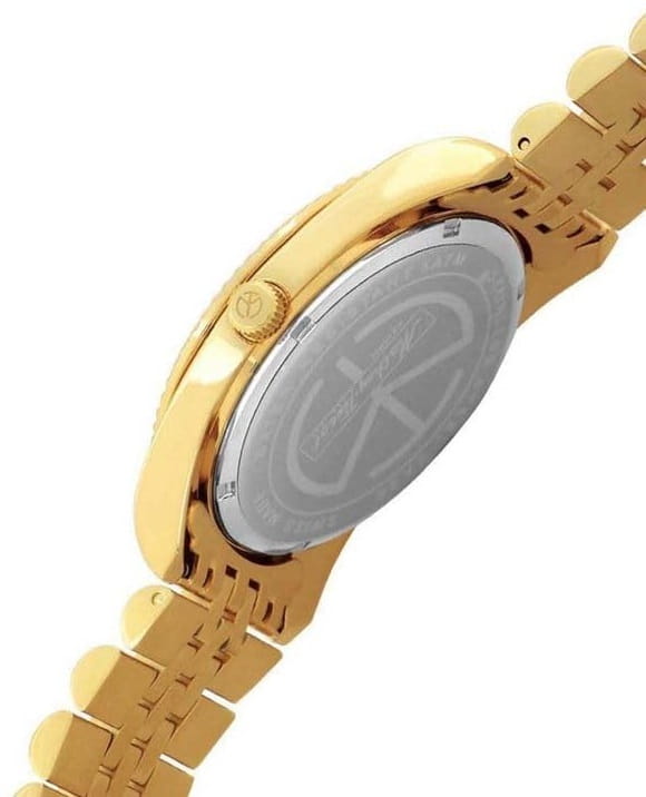 Мужские кварцевые часы Mathey-Tissot Mathy H809PQYI — это стильное сочетание элегантности и современного дизайна. Изящный корпус выполнен из нержавеющей стали с PVD-покрытиемPVDУльтратонкое покрытие наносится в технике вакуумного напыления, сочетает в себе нитрид титана особой прочности со слоем золота или оксида хрома. Несёт в себе декоративную или защитную функцию. золотистого цвета, диаметром 40 мм, что придаст образу элегантности и надежности. Изысканный циферблат с метками в виде точек придает модели особый блеск. Циферблат защищен минеральным стекломМинеральное стеклоМинеральное стекло представляет собой искусственно выращенный минерал кварца. Такое стекло отличается особой устойчивостью к повреждениям и царапинам. Уступает по некоторым качествам сапфировому стеклу., обеспечивает устойчивость к царапинам. БезельБезельВнешний ободок, закрепляющий стекло. В спортивных часах так называется поворотное кольцо с делениями на циферблате, выполняет роль таймера – замеряет отрезки времени на шкале. Неподвижный безель – элемент декора. Однонаправленно вращающийся безель на дайверских часах позволяет фиксировать моменты погружения и выныривания на поверхность. украшен кристаллами. Стрелки с люминесцентным покрытиемЛюминесцентное покрытиеПозволяет считывать показания времени в темноте. Производители наносят на стрелки, часовые индексы, безель или поверхность циферблата светонакопительный состав, дающий холодное свечение.. Окошко даты находится в положении 3 часа. Часы оснащены надежным кварцевым механизмом. Стальной браслет с PVD-покрытиемPVDУльтратонкое покрытие наносится в технике вакуумного напыления, сочетает в себе нитрид титана особой прочности со слоем золота или оксида хрома. Несёт в себе декоративную или защитную функцию. на раскладной застёжке с фиксаторомРаскладная застёжкаТакой тип застёжки используется только на браслетах из металла. Она никогда не раскрывается полностью, происходит разделение на 2 и более частей. Раскладывающая застёжка снизит вероятность потери часов к минимуму., гарантирует комфортное и безопасное ношение. Рифленая заводная головка. Класс водозащиты: 50 метров позволит защитить корпус от случайных брызг или капель дождя. Mathey-Tissot  — отличный выбор для тех, кто ценит утонченность и качество.
