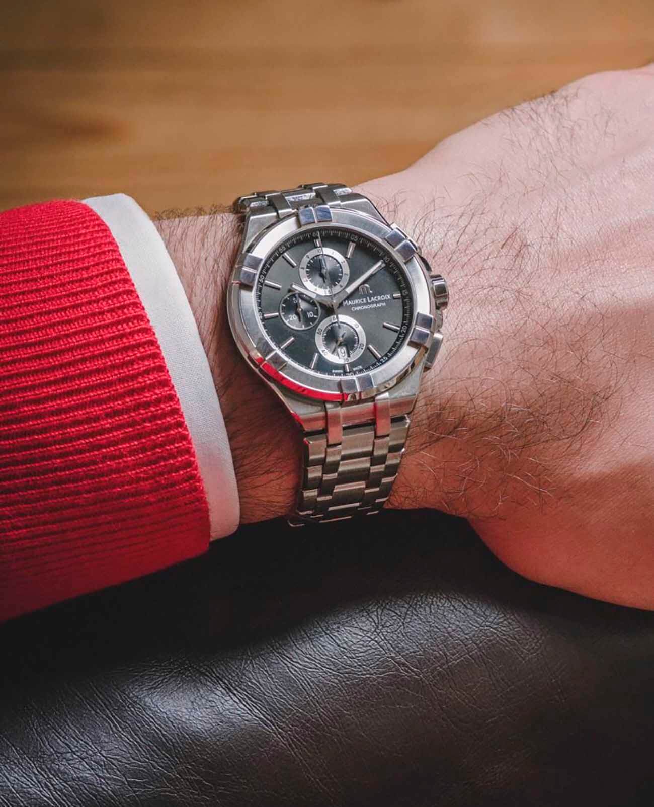 Швейцарские мужские часы Maurice Lacroix Aikon Chronograph AI1018-SS002-130-1 с хронографом