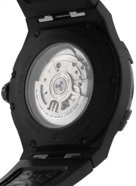 Мужские швейцарские часы Maurice Lacroix Aikon Automatic 43 mm AC6008-TTB00-330-2 с механическим механизмом (автоматический калибр) с высокой точностью. Изысканный циферблат защищен сапфировым стекломСапфировое стеклоПрочный и надёжный материал из кристалла сапфира синтетического происхождения, характеризующийся особой твёрдостью и устойчивостью к царапинам и повреждениям. с антибликовым покрытиемАнтибликовое покрытиеСлой оксида металла в 0,13-0,3 микрон, благодаря которому стекло часов не бликует и не отражает свет. Антибликовое покрытие уменьшает отражение света в 10 раз, обеспечивая отличную читаемость показателей циферблата., устойчивым к царапинам. Эта выразительная модель с корпусом из титана с DLC-покрытиемDLC-покрытиеDiamond like carbon - одно из лучших видов покрытия, представляющее собой углерод с алмазными свойствами. На поверхность материала наносятся распавшиеся молекулы углерода, превращающиеся в плёнку из алмазоподобных связей, которая перенимает твёрдость алмаза. c неподвижным безелемБезельВнешний ободок, закрепляющий стекло. В спортивных часах так называется поворотное кольцо с делениями на циферблате, выполняет роль таймера – замеряет отрезки времени на шкале. Неподвижный безель – элемент декора. Однонаправленно вращающийся безель на дайверских часах позволяет фиксировать моменты погружения и выныривания на поверхность. с керамикой. Стрелки оснащены люминесцентным покрытиемЛюминесцентное покрытиеПозволяет считывать показания времени в темноте. Производители наносят на стрелки, часовые индексы, безель или поверхность циферблата светонакопительный состав, дающий холодное свечение. SuperLumiNova®, обеспечивающим хорошую читаемость в темноте. Водозащита: 100 метров, позволит плавать, нырять. Удобный каучуковый браслет со стандартной застежкой для максимального комфорта и лёгкости в повседневном использовании. Модель подчёркивает индивидуальность владельца и идеально подходит как для повседневного образа.