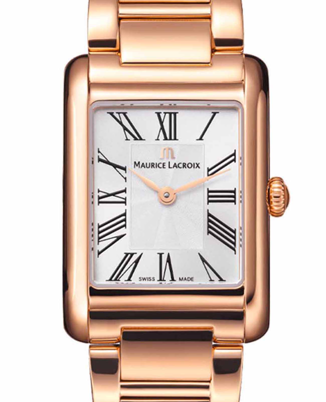 Швейцарские женские кварцевые часы Maurice Lacroix FA1205-PVP02-110-1 оснащены корпусом из нержавеющей стали с PVD-покрытиемPVDУльтратонкое покрытие наносится в технике вакуумного напыления, сочетает в себе нитрид титана особой прочности со слоем золота или оксида хрома. Несёт в себе декоративную или защитную функцию. размером 24 мм х 34 мм и защищены сапфировым стекломСапфировое стеклоПрочный и надёжный материал из кристалла сапфира синтетического происхождения, характеризующийся особой твёрдостью и устойчивостью к царапинам и повреждениям., устойчивым к мелким механическим повреждениям. Серебряный циферблат украшен часовыми индексами в виде цифр и стрелками, обеспечивающими функции отображения часов и минут. Часы имеют водонепроницаемость 50 метров, позволит защитить корпус от случайных брызг или капель дождя. Модель комплектуется браслетом из нержавеющей стали с PVD-покрытиемPVDУльтратонкое покрытие наносится в технике вакуумного напыления, сочетает в себе нитрид титана особой прочности со слоем золота или оксида хрома. Несёт в себе декоративную или защитную функцию. на раскладном замкеРаскладной замокДанный вариант застежки используется только на часах с металлическим браслетом. Отличительная особенность такого крепления в том, что длина браслета становится универсальной и вы можете самостоятельно отрегулировать нужный вам размер – застежка просто двигается по браслету часов.. Прочный корпус и надежный механизм гарантируют точность хода и долговечность использования. Дизайн и производство часов выполнены в Швейцарии, что подтверждает их высокое качество. Международная гарантия 2 года обеспечивает уверенность в надежности модели. Эти часы сочетают в себе элегантный дизайн и практичность, делая их универсальным аксессуаром для повседневного использования.