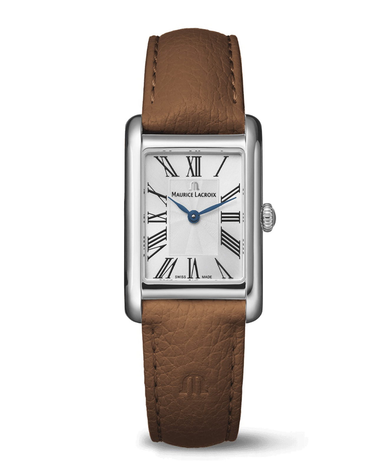 Женские кварцевые часы Maurice Lacroix FIABA — это изысканный аксессуар, вдохновлённый сказками и создающий образ элегантной современной женщины. Модель выполнена в прямоугольной форме из нержавеющей стали с размерами 24x34 мм и толщиной 6,5 мм, что делает её утончённой и лаконичной. Циферблат серебристого цвета дополнен центральным рисунком «флинже» (flinqué), придающим ему глубину и роскошь. Римские цифры черного цвета и стрелки синего оттенка подчёркивают изысканность дизайна. Защиту механизма обеспечивает сапфировое стеклоСапфировое стеклоПрочный и надёжный материал из кристалла сапфира синтетического происхождения, характеризующийся особой твёрдостью и устойчивостью к царапинам и повреждениям. с двусторонним антибликовым покрытиемАнтибликовое покрытиеСлой оксида металла в 0,13-0,3 микрон, благодаря которому стекло часов не бликует и не отражает свет. Антибликовое покрытие уменьшает отражение света в 10 раз, обеспечивая отличную читаемость показателей циферблата., устойчивым к повреждениям. Часы оснащены кварцевым механизмом, обеспечивающим точную работу и минимальное обслуживание. Браслет из коричневой кожи шириной 18 мм оснащён стандартной застёжкой из нержавеющей стали, обеспечивающей комфорт и надёжную фиксацию на запястье. Система быстрой замены ремешка позволяет легко менять его по желанию. Водонепроницаемость позволяет использовать модель при мытье рук или под лёгким дождём. Гарантия 2 года подтверждает качество и долговечность изделия. Эти часы станут универсальным аксессуаром для тех, кто ценит сочетание стиля, функциональности и швейцарского мастерства — идеальный выбор для вечерних выходов и торжественных случаев.
