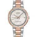 Практичные и многофункциональные часы великолепно сидящие на руке. Женские наручные часы. Круглый стальной корпус с PVD-покрытиемPVDУльтратонкое покрытие наносится в технике вакуумного напыления, сочетает в себе нитрид титана особой прочности со слоем золота или оксида хрома. Несёт в себе декоративную или защитную функцию.. Циферблат с люминесцентным покрытиемЛюминесцентное покрытиеПозволяет считывать показания времени в темноте. Производители наносят на стрелки, часовые индексы, безель или поверхность циферблата светонакопительный состав, дающий холодное свечение. стрелок, дополнен сапфировым стекломСапфировое стеклоПрочный и надёжный материал из кристалла сапфира синтетического происхождения, характеризующийся особой твёрдостью и устойчивостью к царапинам и повреждениям., устойчивым к появлению царапин и обладающее высокой прозрачностью. Запас хода 40 часа. Циферблат украшен 12 бриллиантами. Окошко даты и дня недели. Рифленая заводная головка. Стальной браслет с частичным PVD-покрытиемPVDУльтратонкое покрытие наносится в технике вакуумного напыления, сочетает в себе нитрид титана особой прочности со слоем золота или оксида хрома. Несёт в себе декоративную или защитную функцию. и с застёжкой «бабочка» с кнопкамиЗастёжка "бабочка"Такой вид застёжки дополняется предохранителями, помогающими избежать случайного раскрытия браслета. Обладают изящным исполнением. .