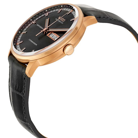 Мужские швейцарские механические часы с системой автоматического подзавода Mido Commander M016.430.36.061.02, механический механизм (автоматический калибр) с высокой точностью. Сапфировое стеклоСапфировое стеклоПрочный и надёжный материал из кристалла сапфира синтетического происхождения, характеризующийся особой твёрдостью и устойчивостью к царапинам и повреждениям. устойчивое к появлению царапин, обладающее высокой прозрачностью. Класс водозащиты: 50 метров, позволит защитить корпус от случайных брызг или капель дождя. Корпус часов изготовлен из стали с PVD-покрытиемPVDУльтратонкое покрытие наносится в технике вакуумного напыления, сочетает в себе нитрид титана особой прочности со слоем золота или оксида хрома. Несёт в себе декоративную или защитную функцию.. Кожаный ремешок с раскладной застёжкойРаскладная застёжкаТакой тип застёжки используется только на браслетах из металла. Она никогда не раскрывается полностью, происходит разделение на 2 и более частей. Раскладывающая застёжка снизит вероятность потери часов к минимуму.. Окошки дня недели и даты находятся в положении 3 часа.